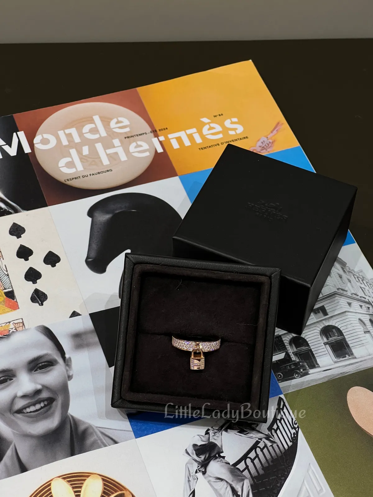 HERMES 玫瑰金鑽 垂吊鎖釦H鑽 戒指