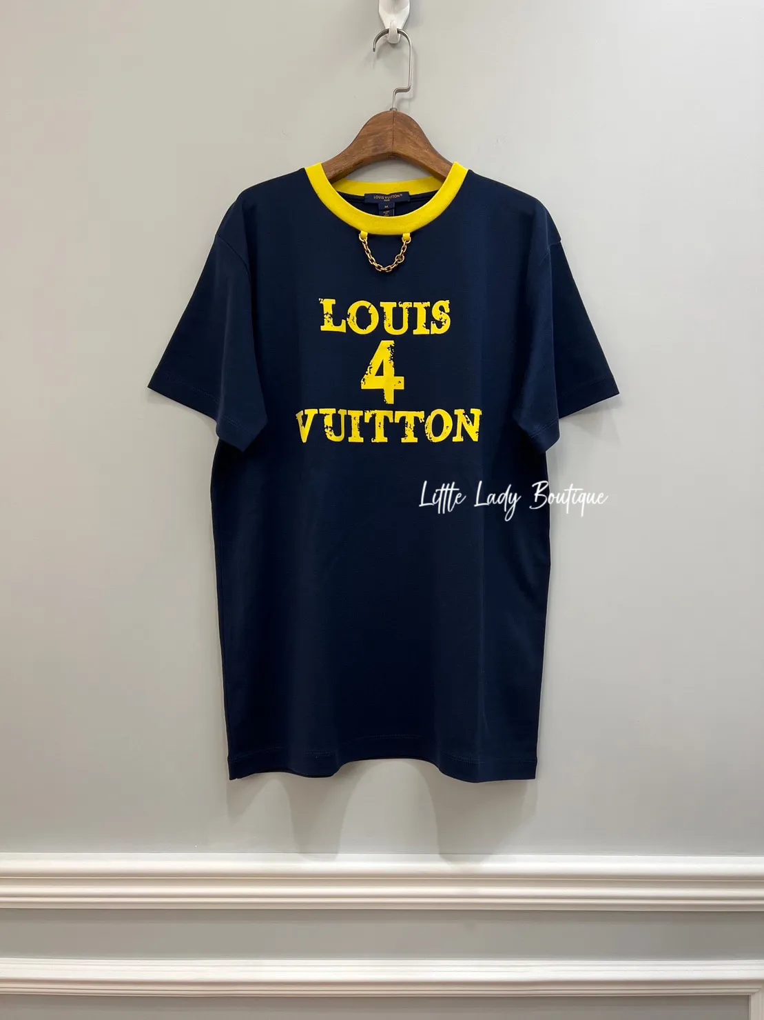 LV 女士 墨藍底 黃字Louis 4 Vuitton 短袖上衣