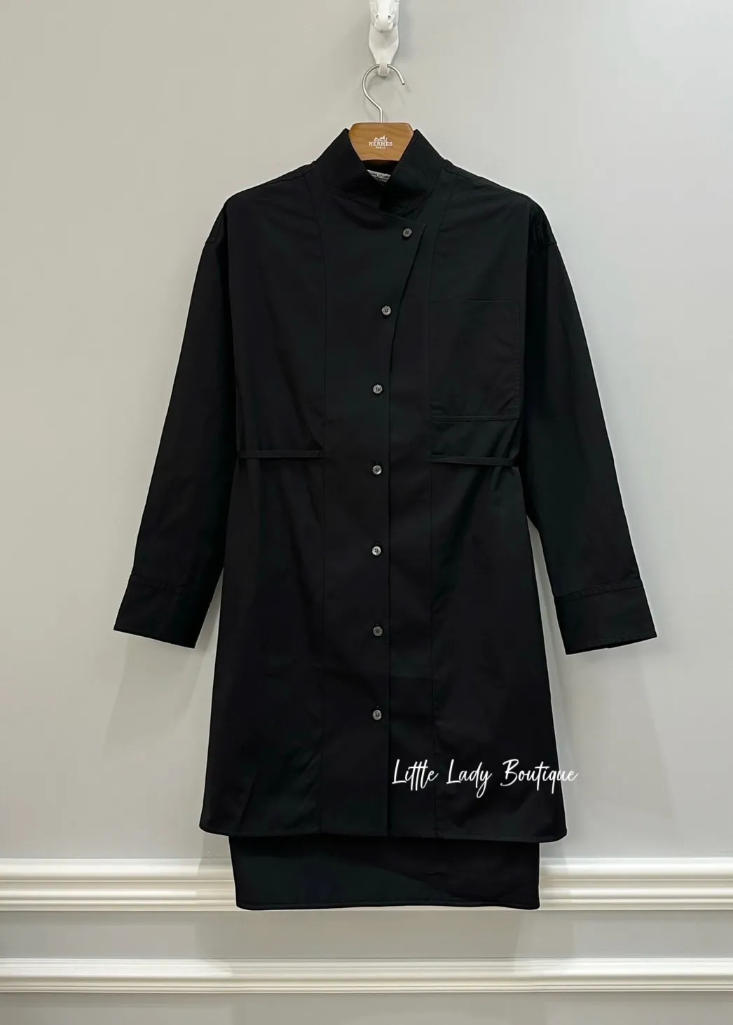 34號 HERMES 女士 黑色 立領收腰 棉質襯衫式 長袖外套