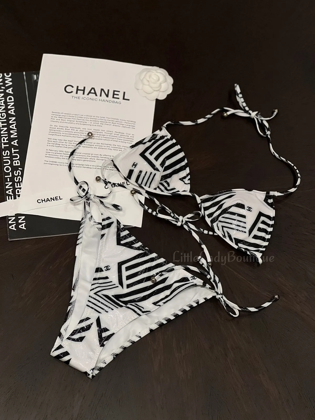 38號 CHANEL 女士 白底 黑線條 星星 泳衣下身