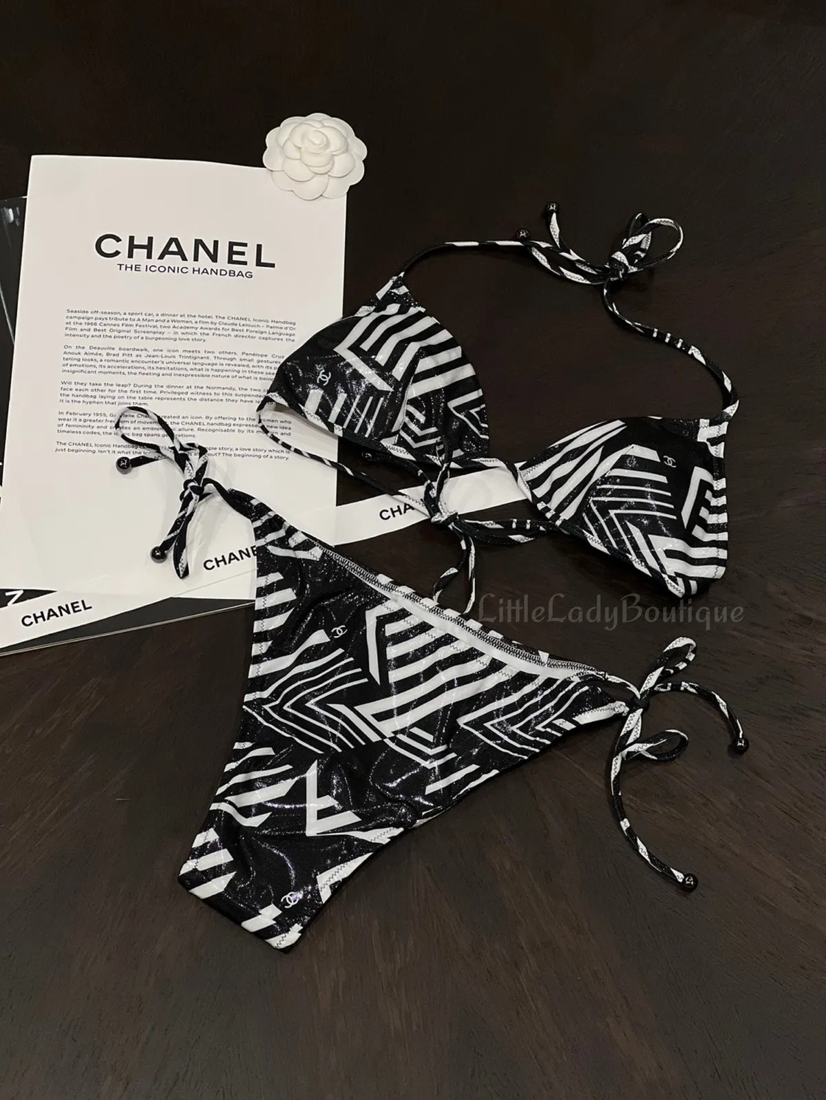 38號 CHANEL 女士 黑底 白線條 星星 泳衣 上衣
