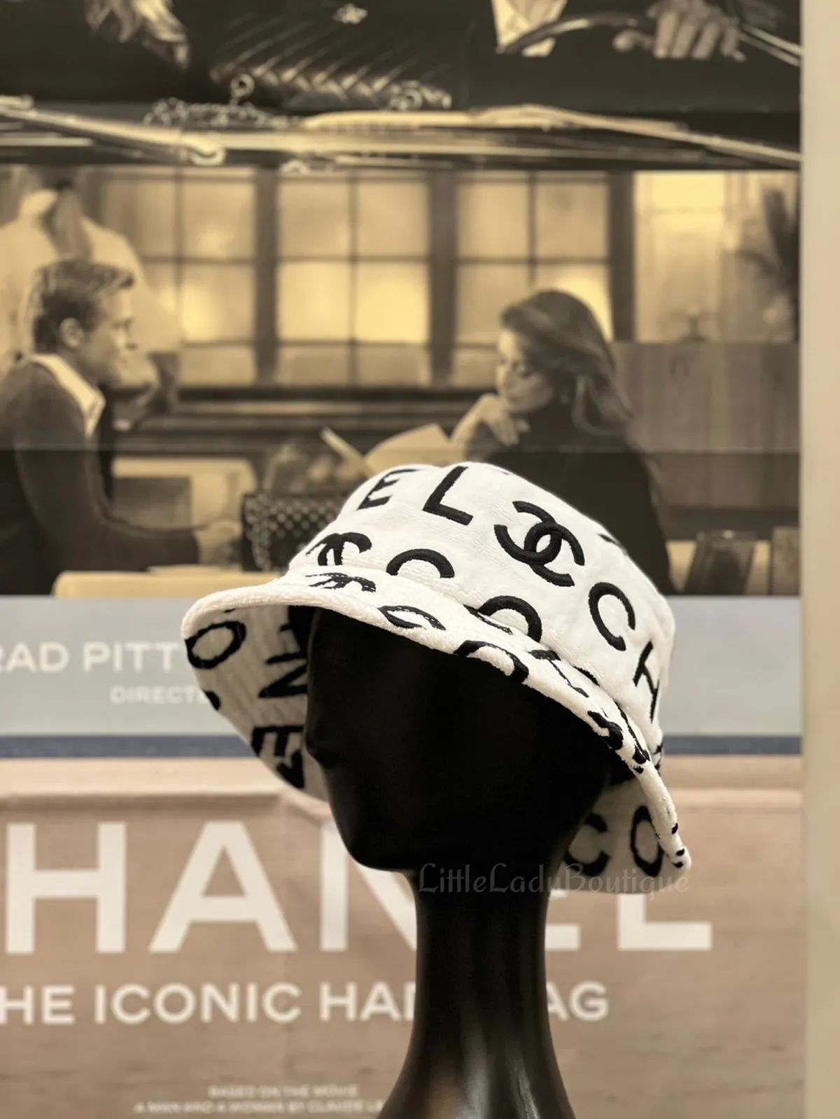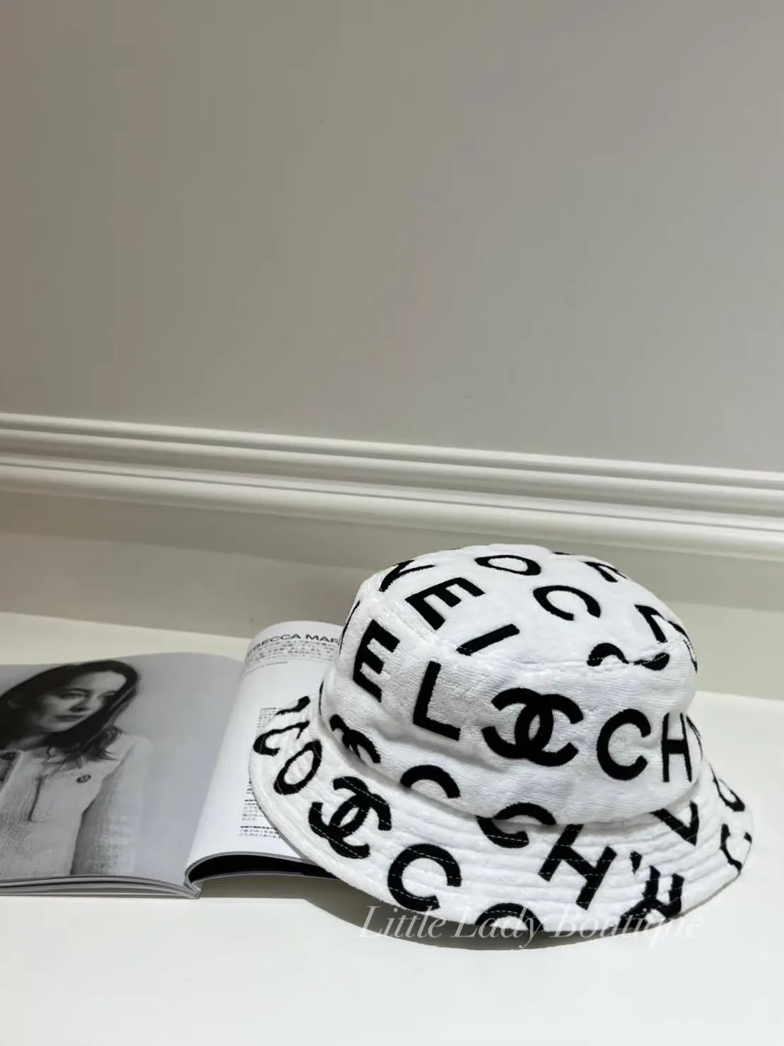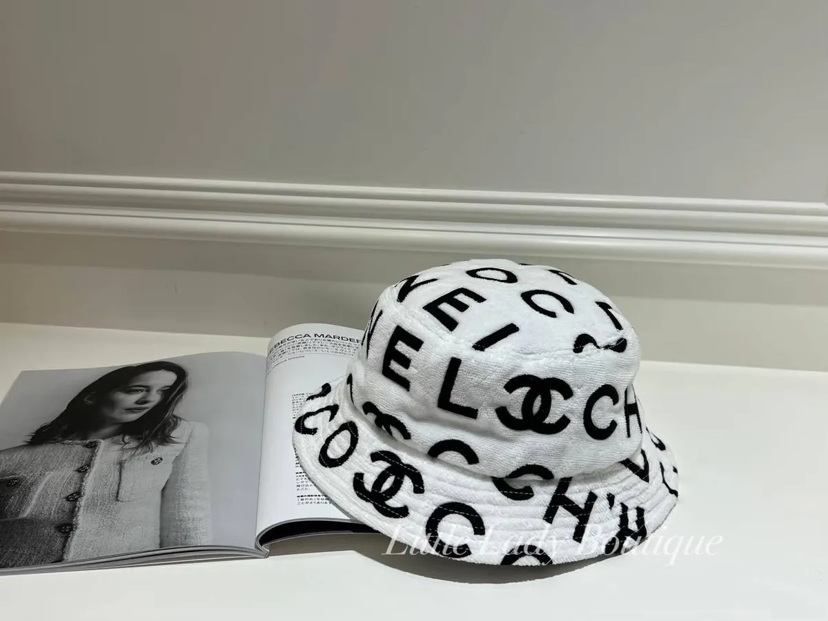 CHANEL 女士 白底chanel黑字 毛毛漁夫帽