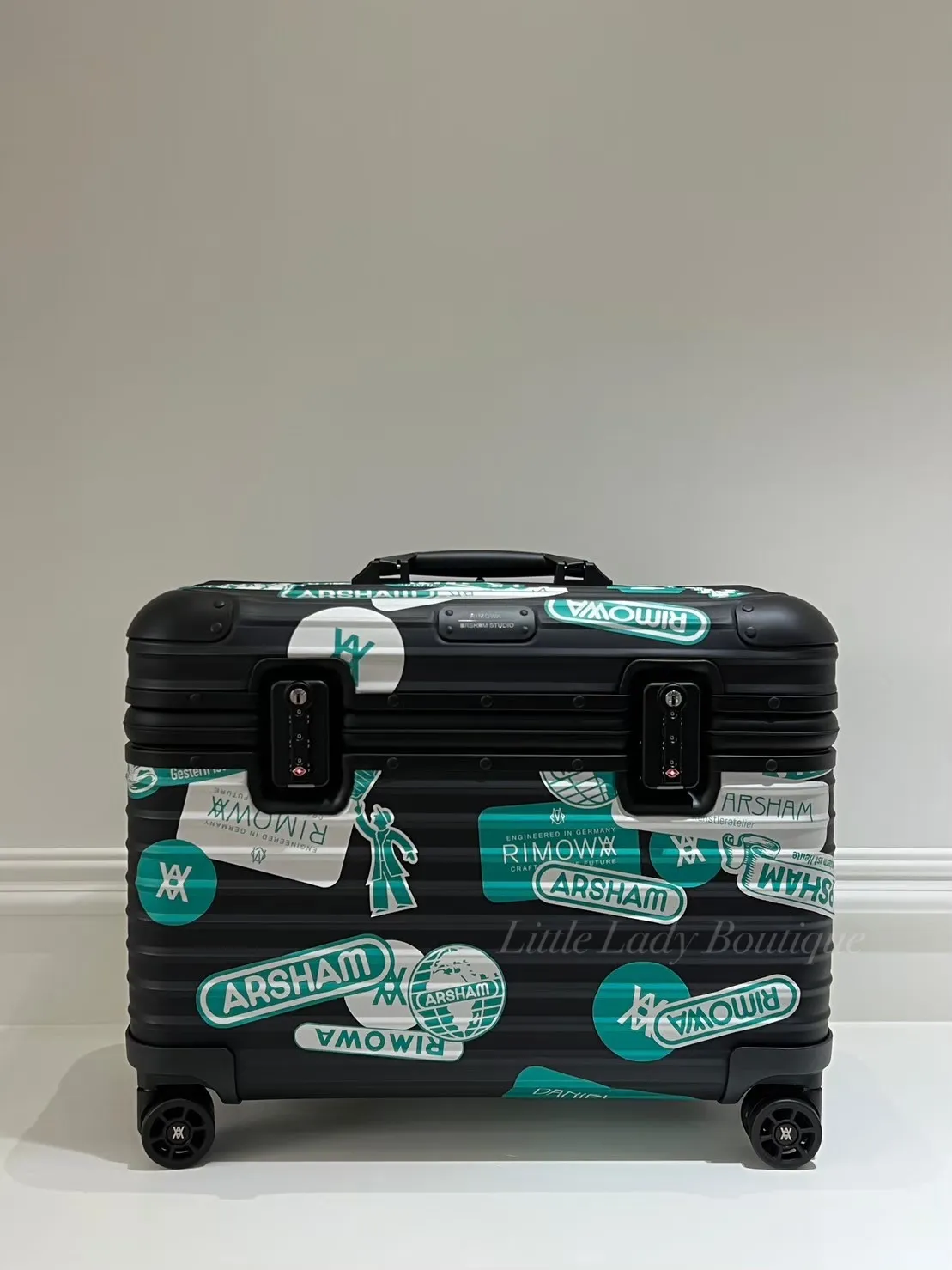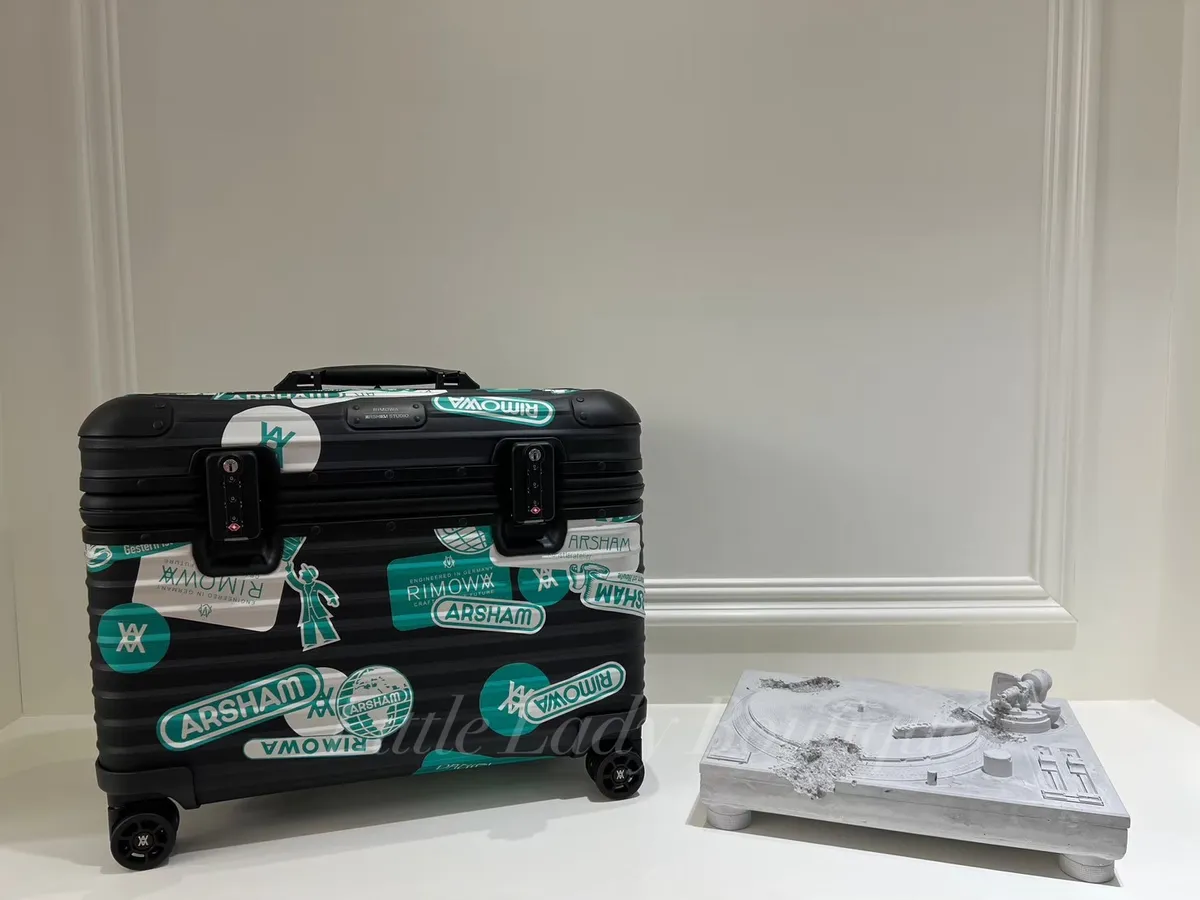 RIMOWA x Daniel Arsham Eroded Turntable in Pilot Case 亞洲限量 霧面黑 復古綠貼紙 精品行李箱