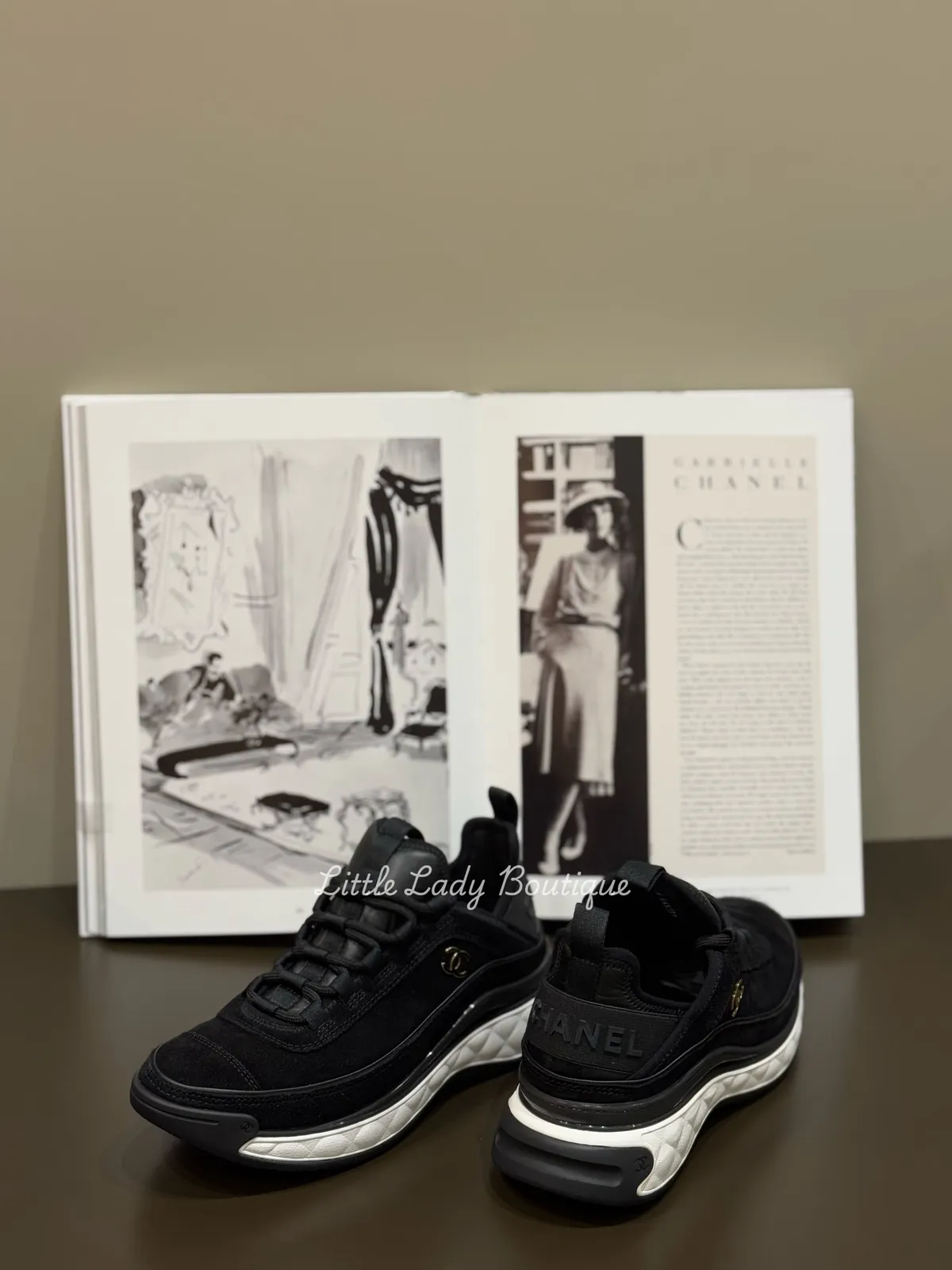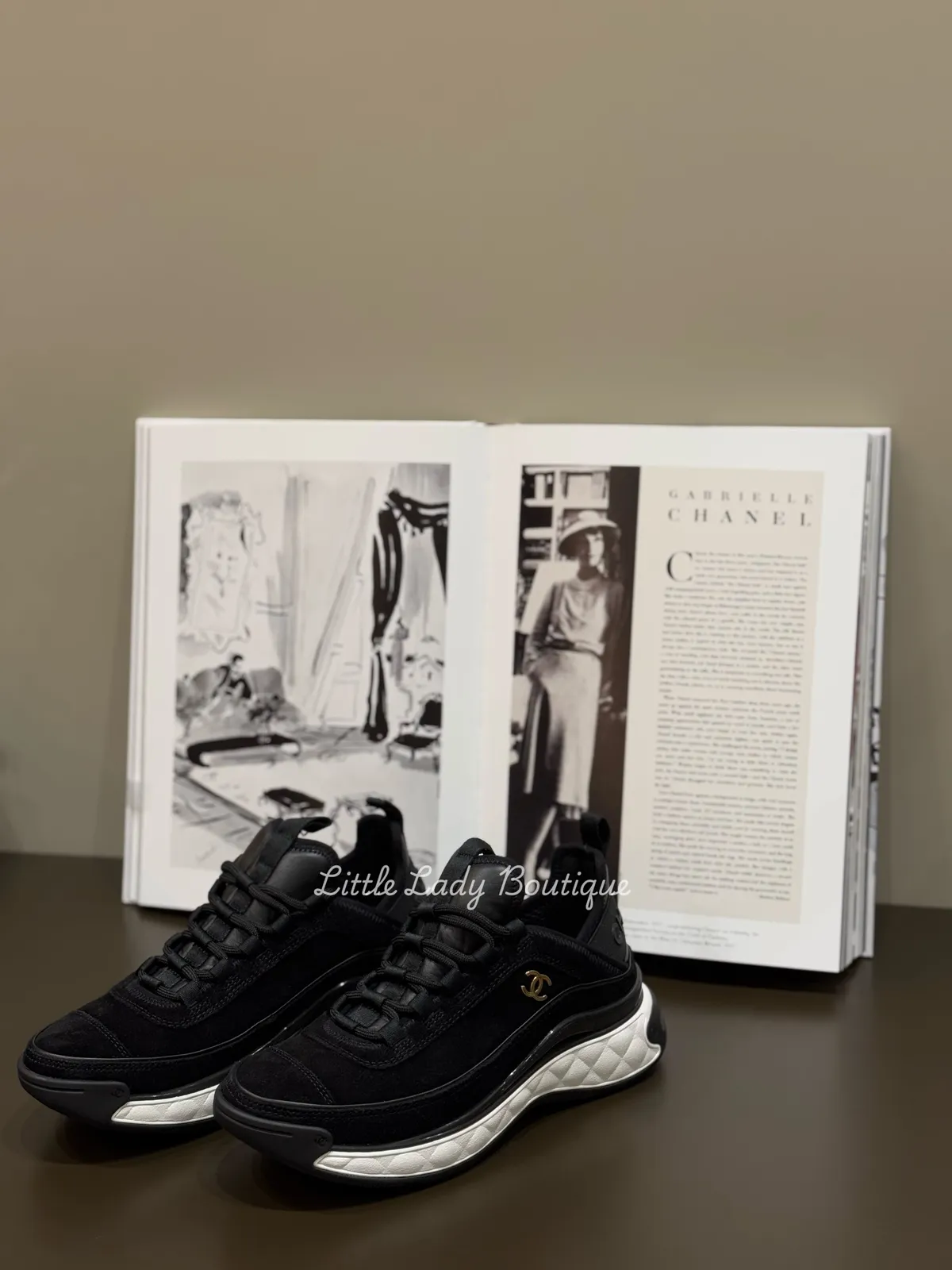 CHANEL 女士 金小雙C LOGO 黑麂皮 底白格 運動鞋