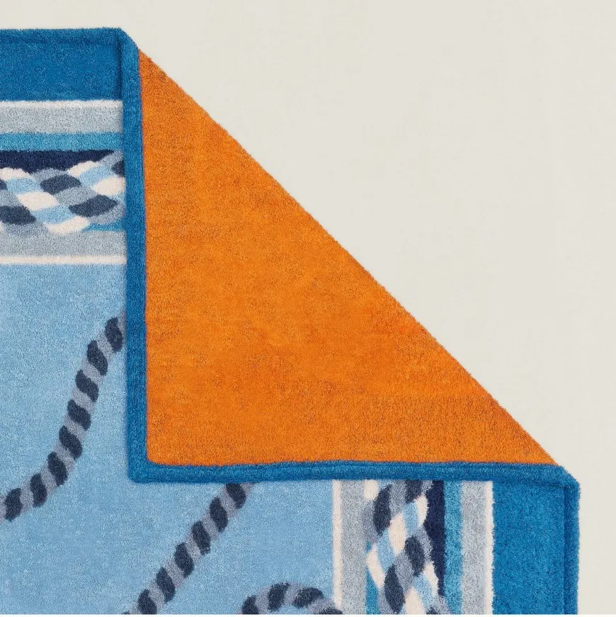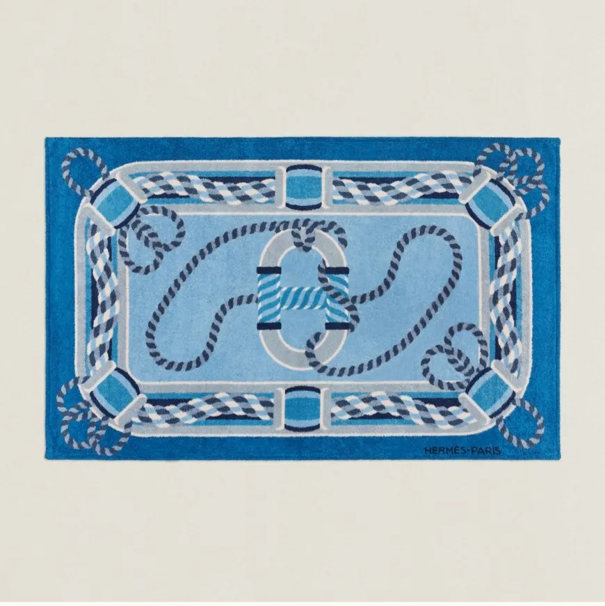 HERMES Canoe H 航海豬鼻 藍色 海灘巾 (90*150CM)