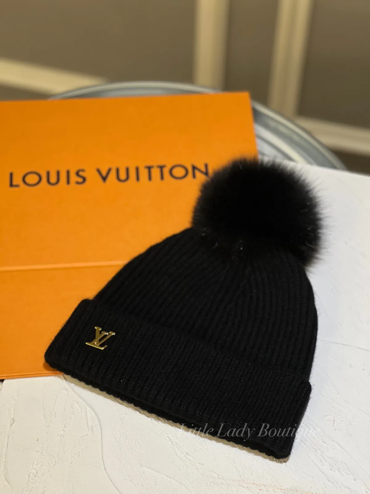 LV 女士 黑色 球球毛帽 (100%山羊絨)