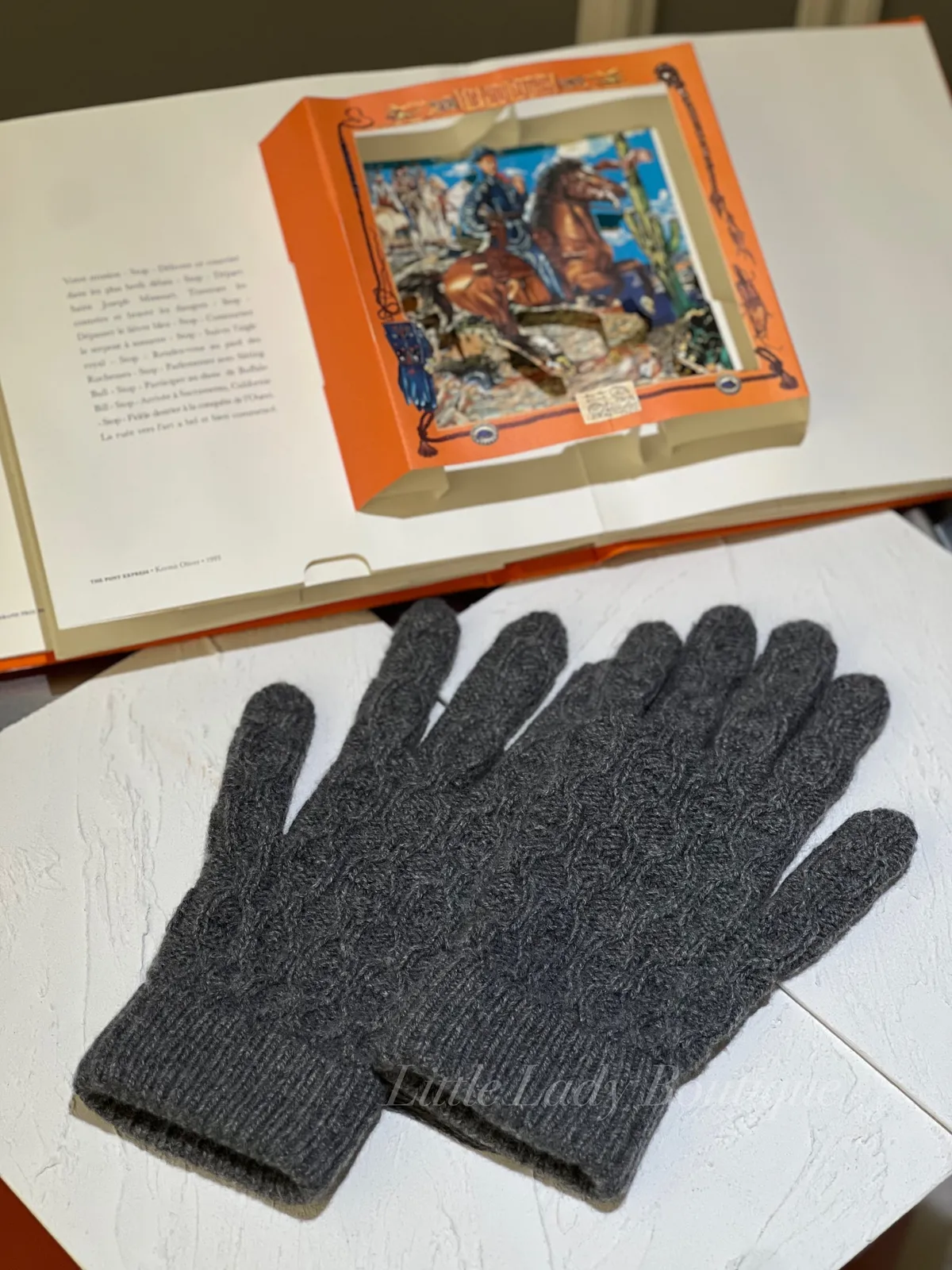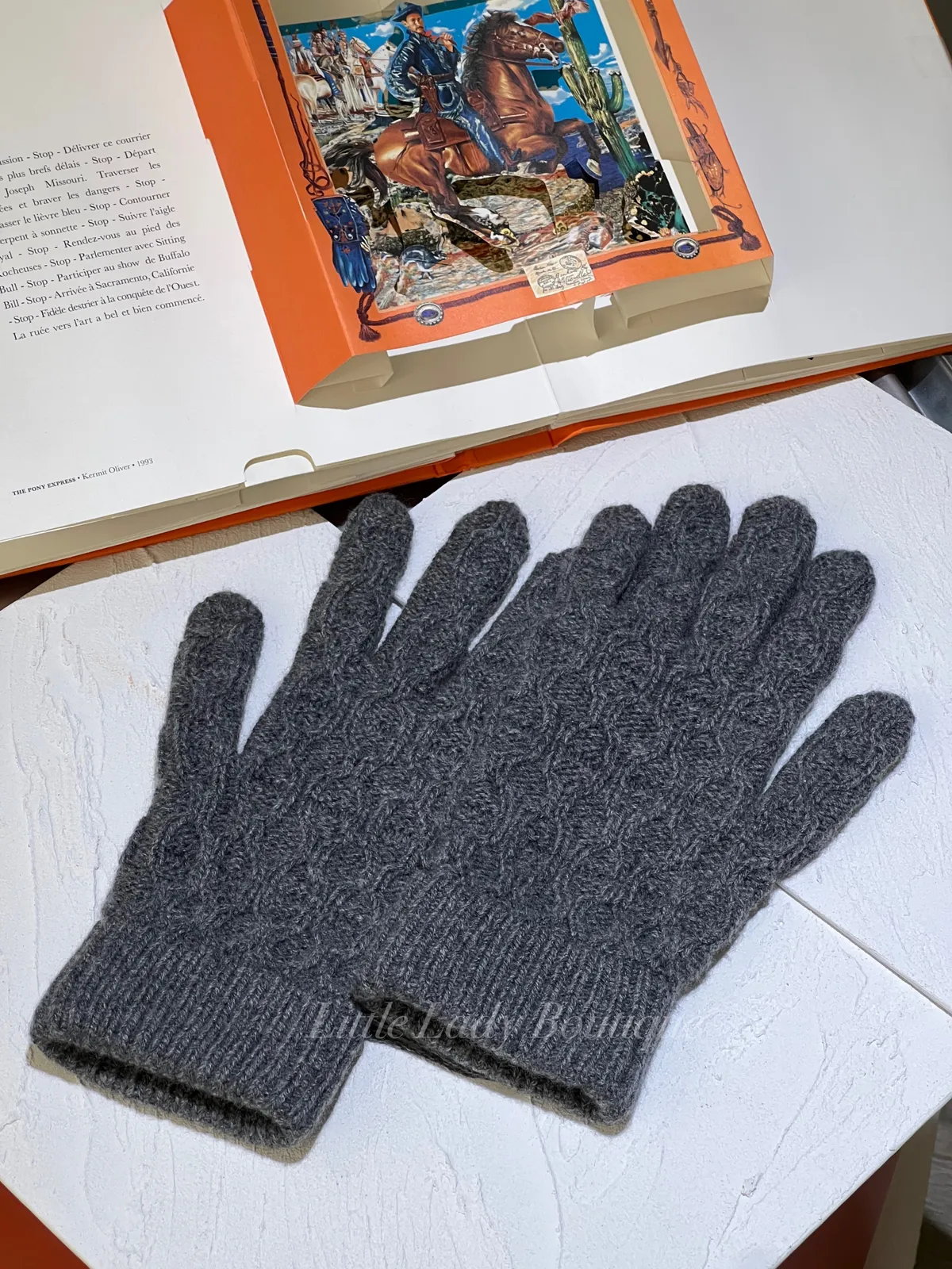 HERMES 豬鼻鍊針織造型 深灰色 毛料手套 (100%CASHMERE)