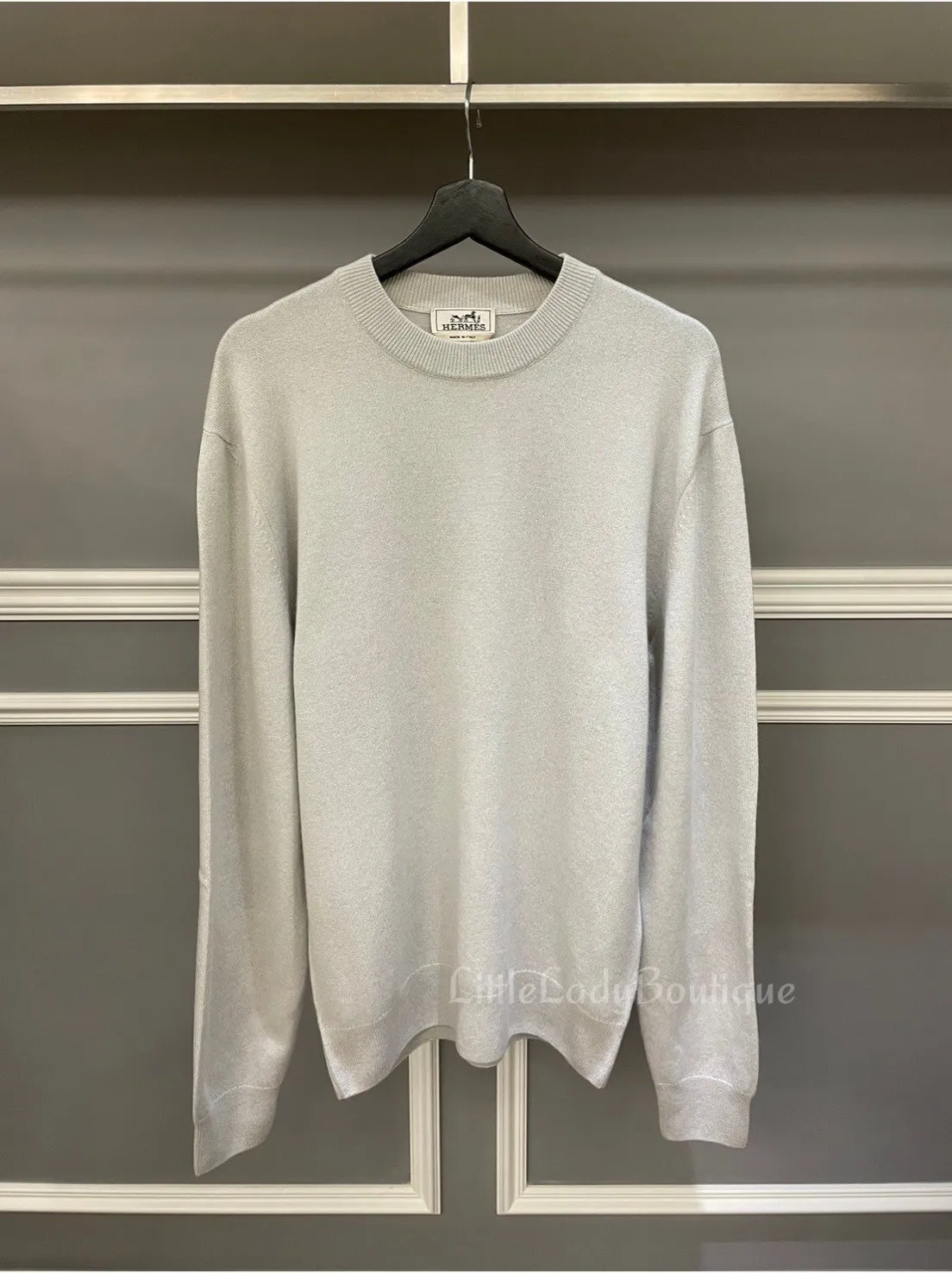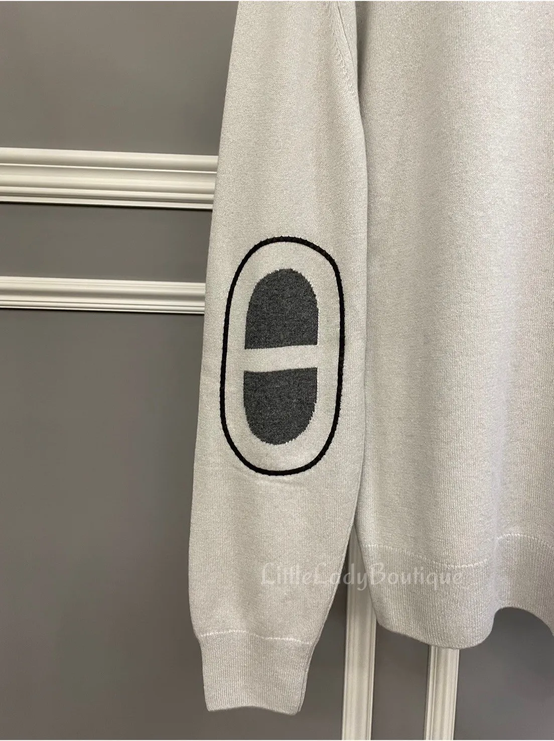 HERMES 男士 灰白底 手肘黑縫線豬鼻圖案 Chaine d’Ancre 圓領毛衣