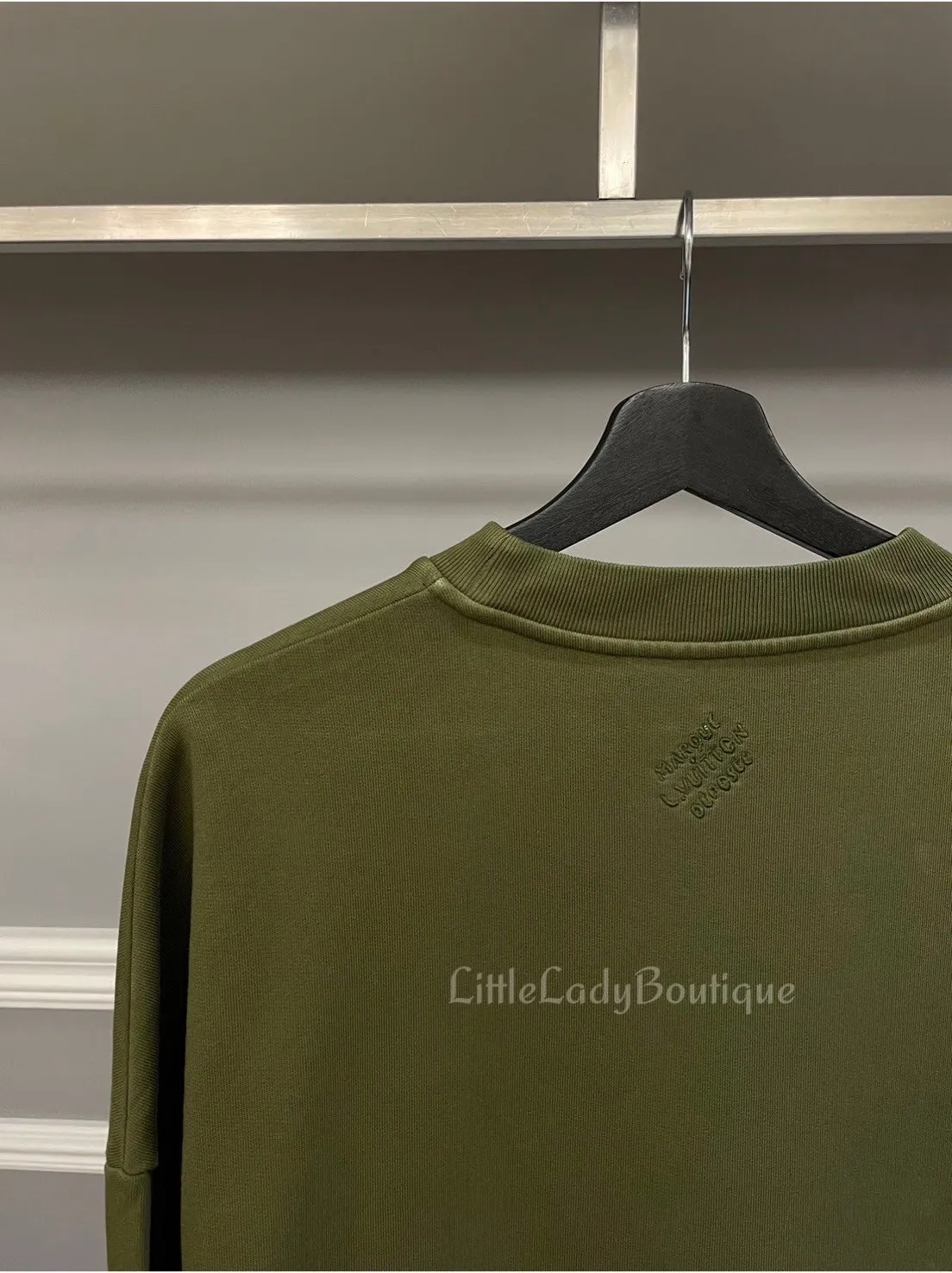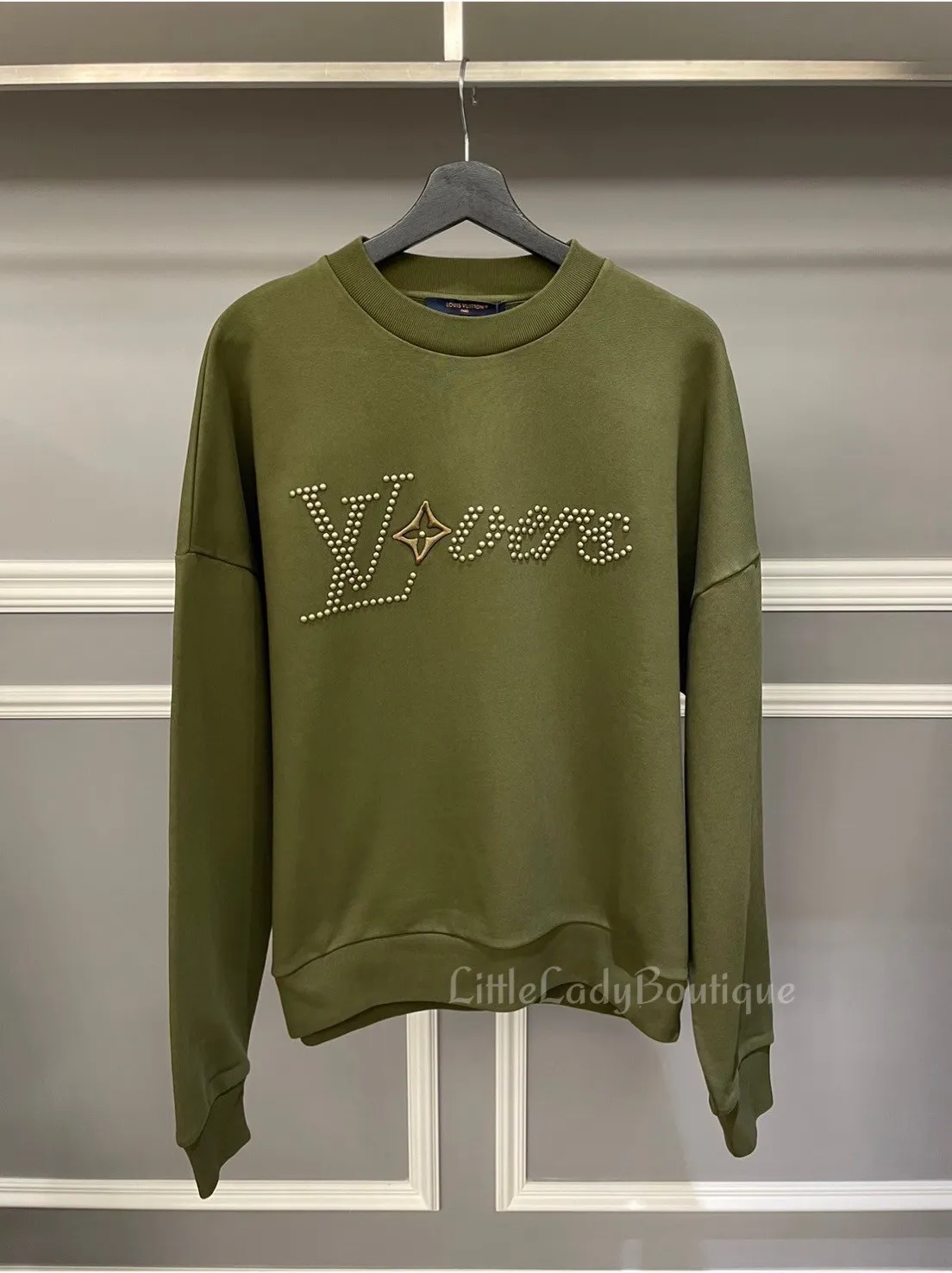 LV 男士 橄欖綠色 LV 金銅色LV釘釦字 長袖衛衣 (版型寬鬆)