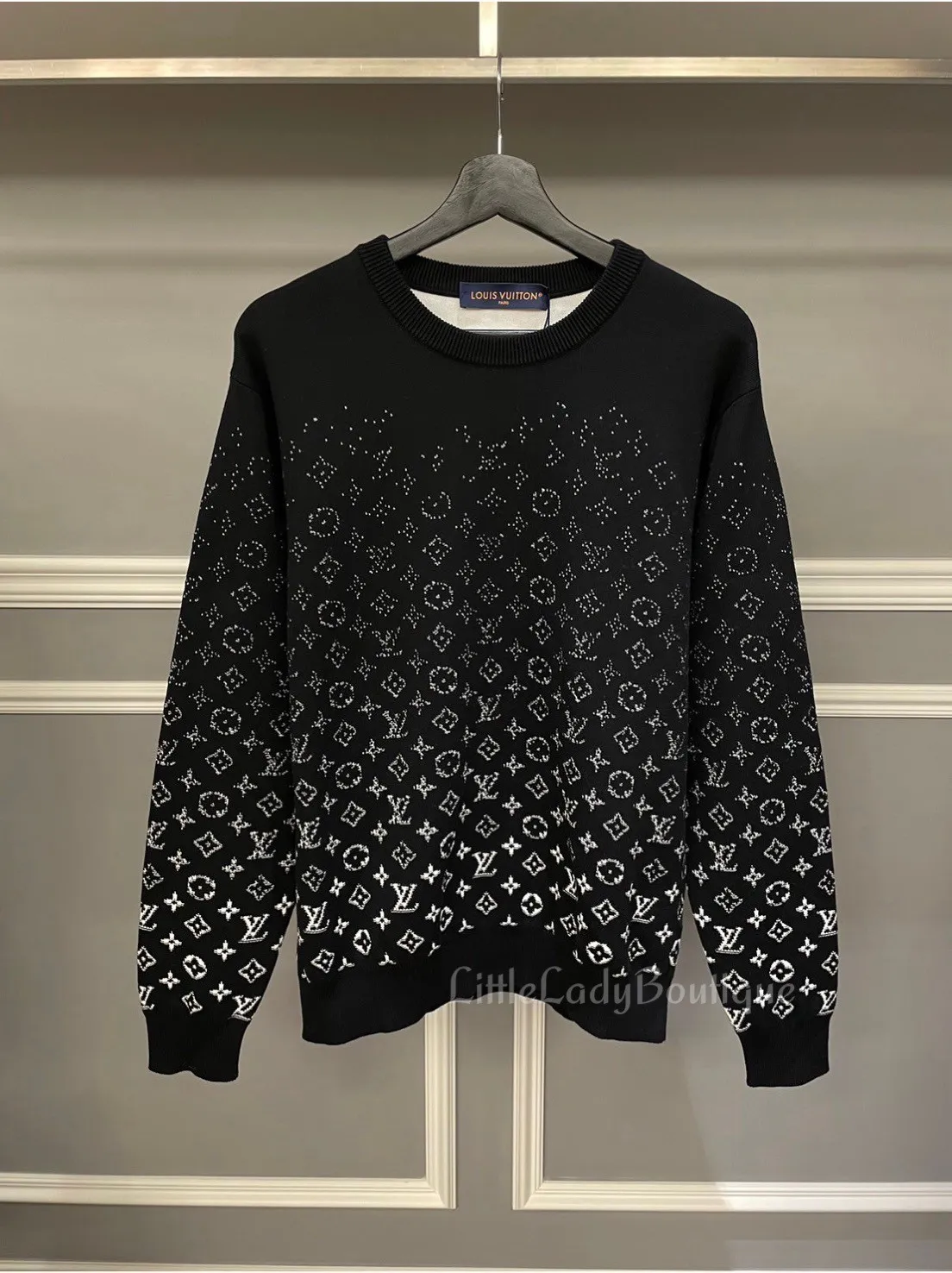 LV 男士 黑底 白色漸層 Monogram LOGO字 圓領長袖衛衣(100%棉)(版型