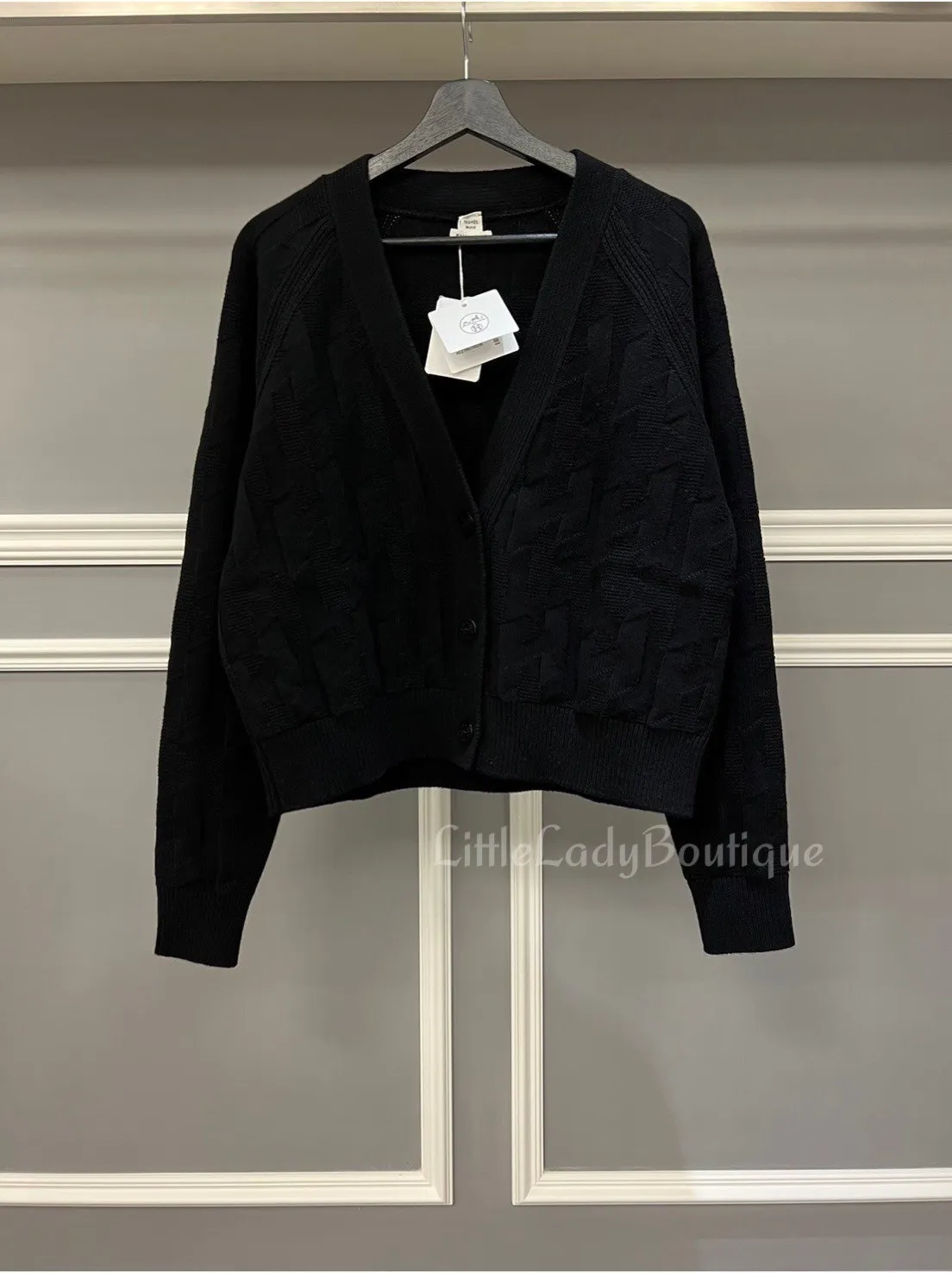 HERMES 女士 黑 H圖案 短版 針織外套