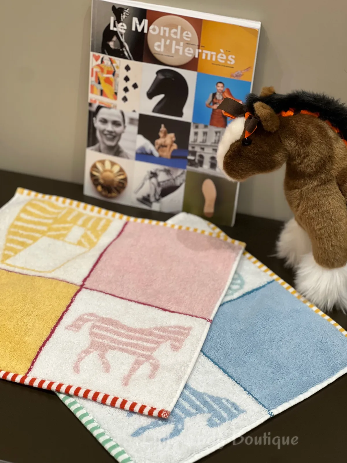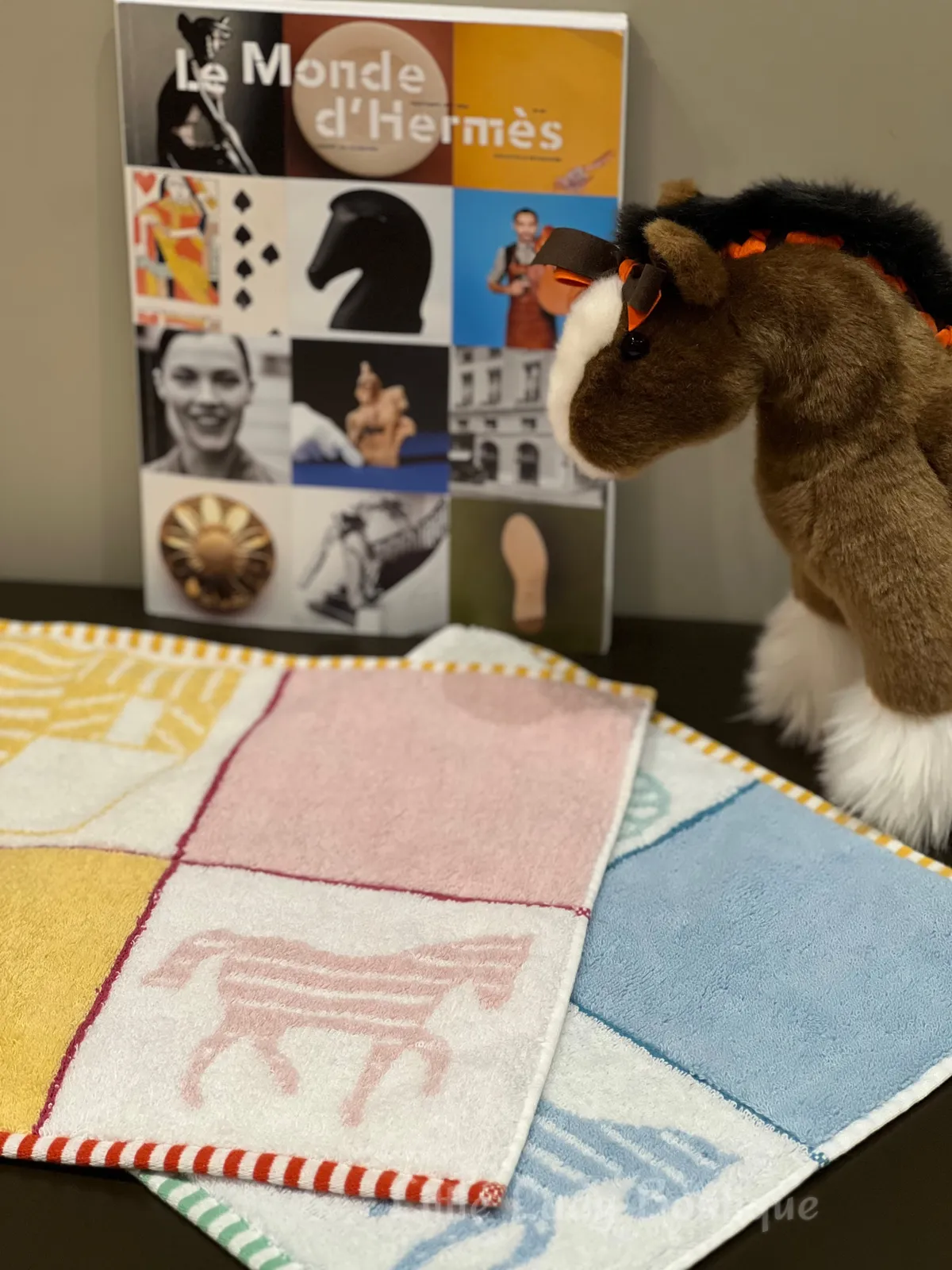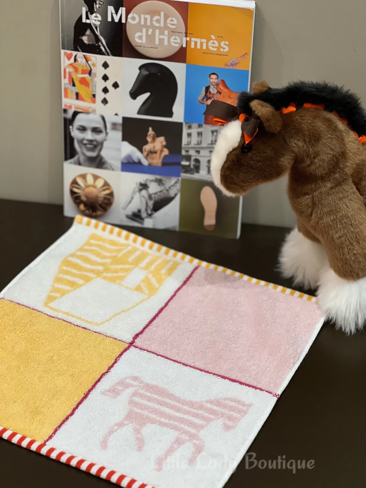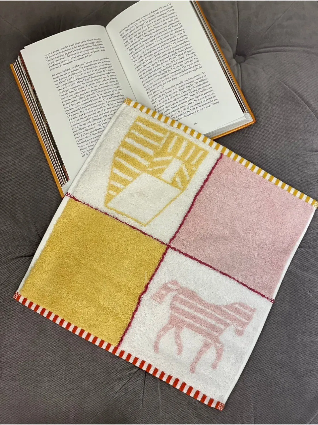 HERMES 玫瑰色/黃色 Les Cabanes北鼻小方巾 (34 x 34 cm)