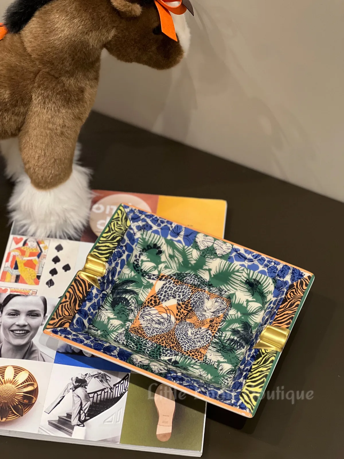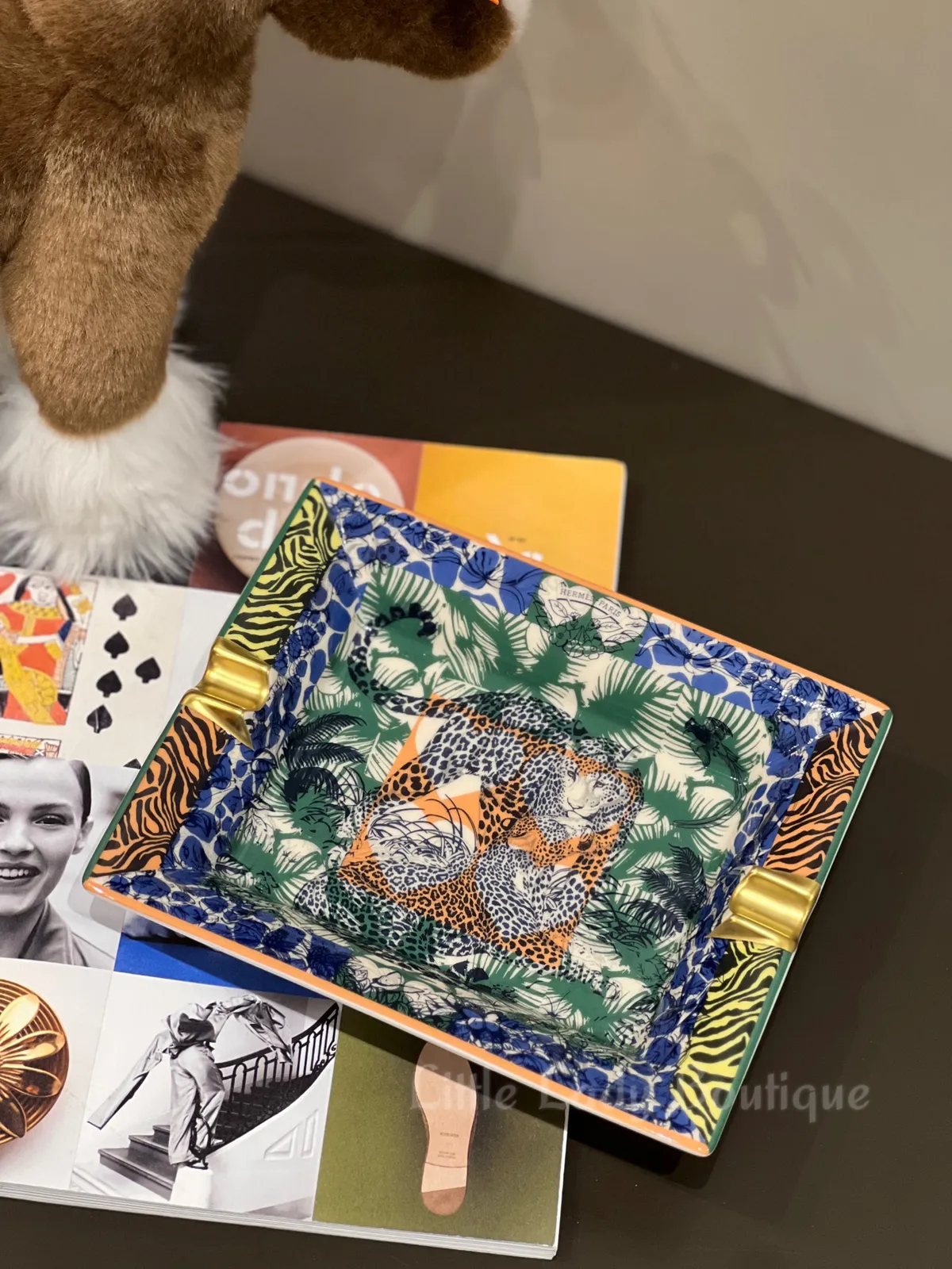 HERMES Jungle Love Wild 叢林之愛 豹 動物紋色塊 菸灰缸(鈷藍 /