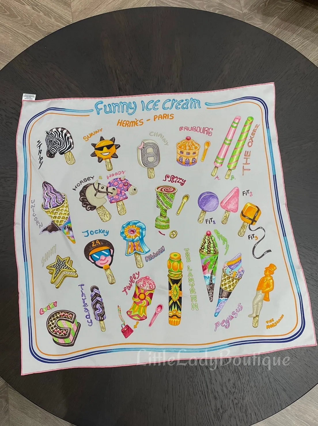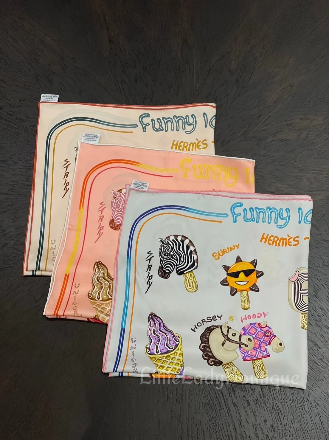 HERMES 70*70 絲巾 趣味冰淇淋 (珍珠灰 / 粉色 / 多色拼接)