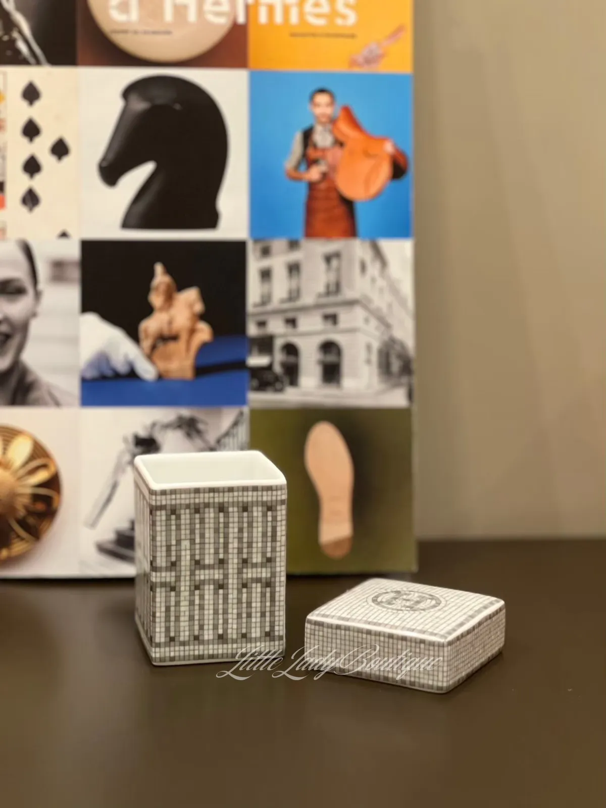 HERMES 馬賽克24 銀色 小號 方糖/牙籤罐 (長 5 x 寬 5 x 高7CM)