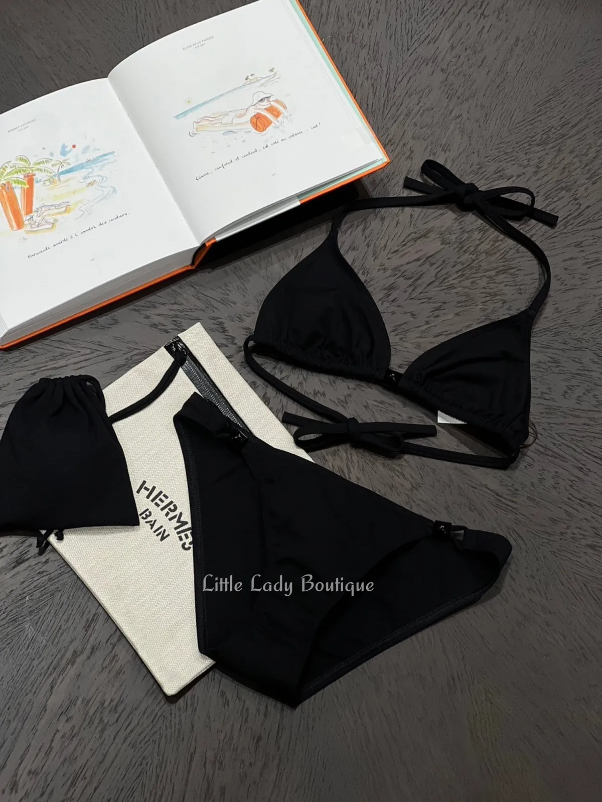 HERMES 女士 CRYSTAL 黑色素面 兩側鉚釘釦造型 比基尼 下身