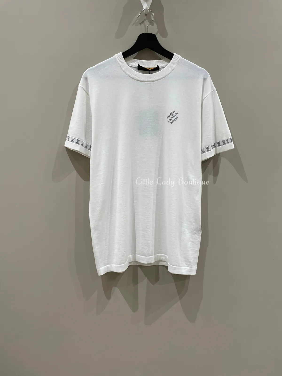 LV 男士 白底 螺紋針織 胸口及袖口銀色LV字 短袖上衣(100%棉)