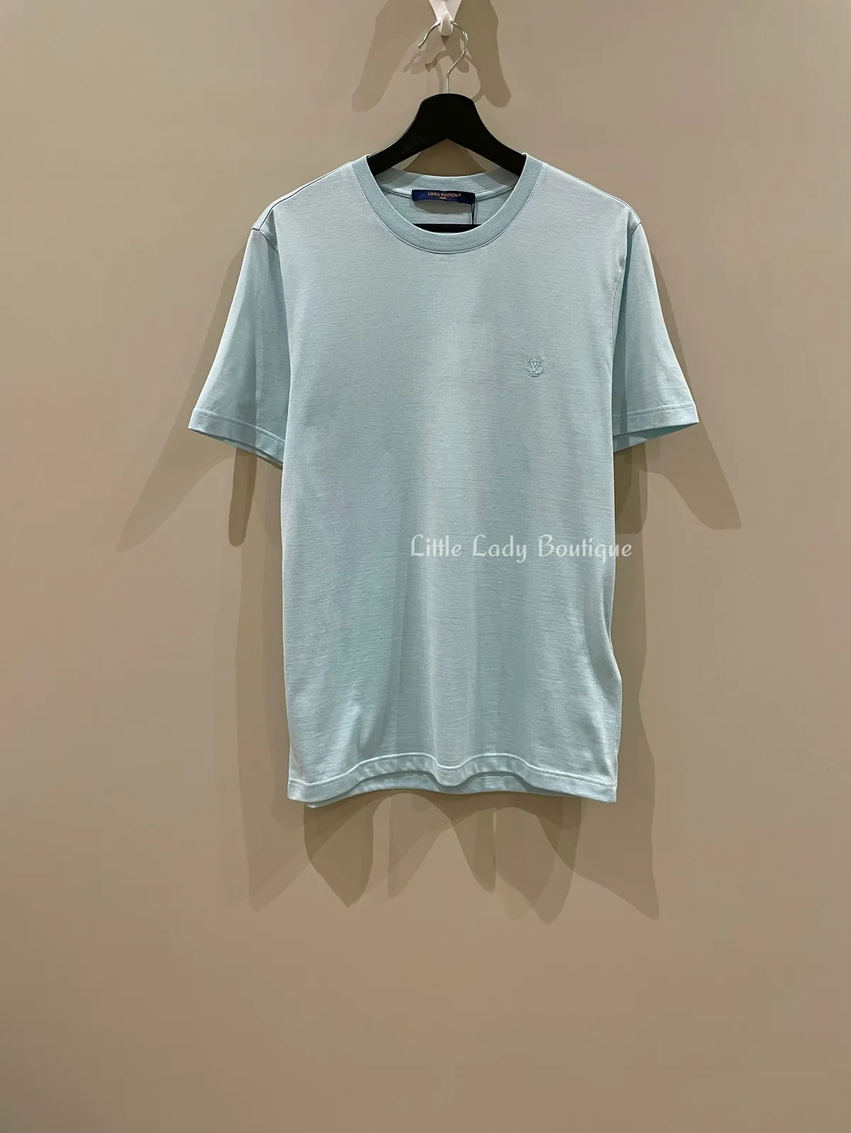 LV 男士 棉花糖淺藍底 左胸小圓LV LOGO 短袖上衣(100%棉)