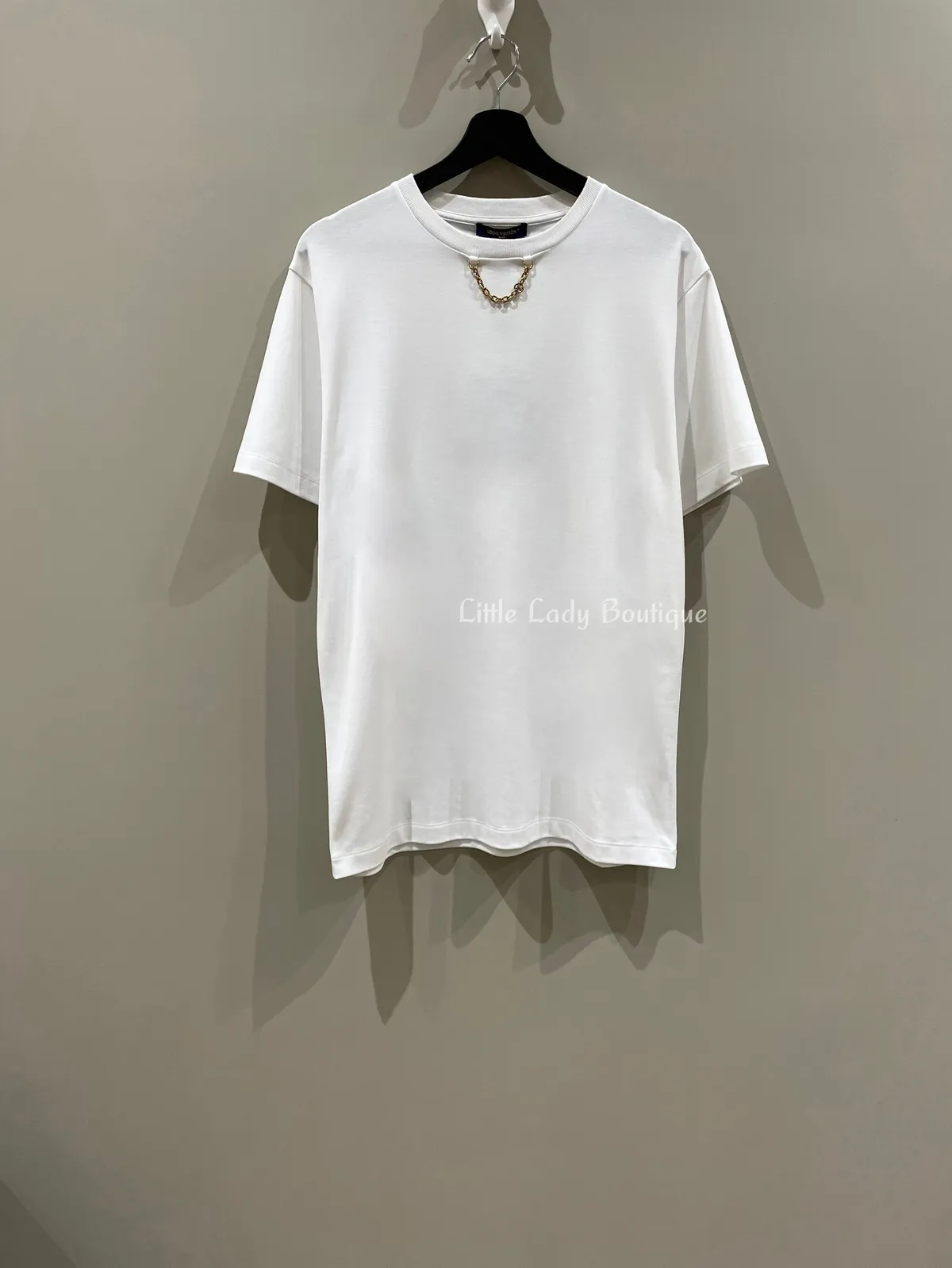 LV 女士 純白底 金鍊造型 短袖上衣 (100%棉)