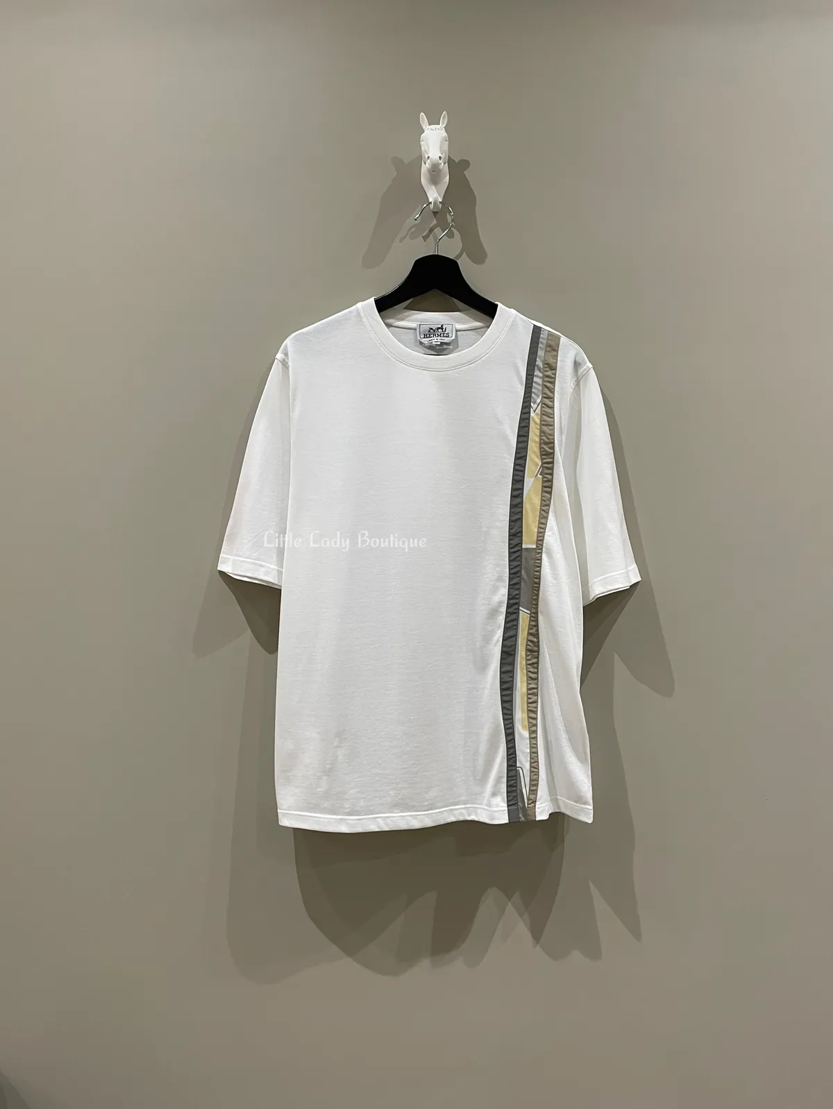HERMES 男士 白底 左半波浪線條圖案 短袖上衣 (100%棉)