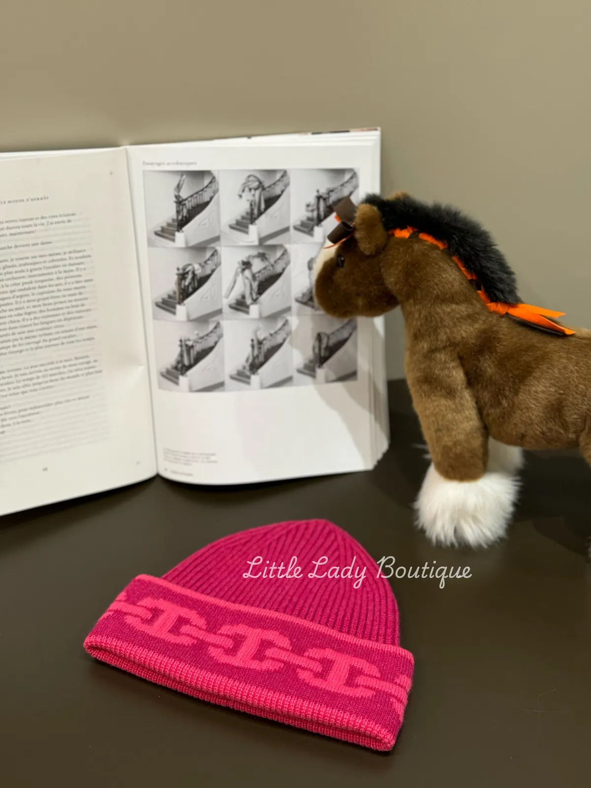 S號 HERMES 女士 HEAVEN 極致桃粉 立體豬鼻鍊圖案 針織毛帽 (100%CA