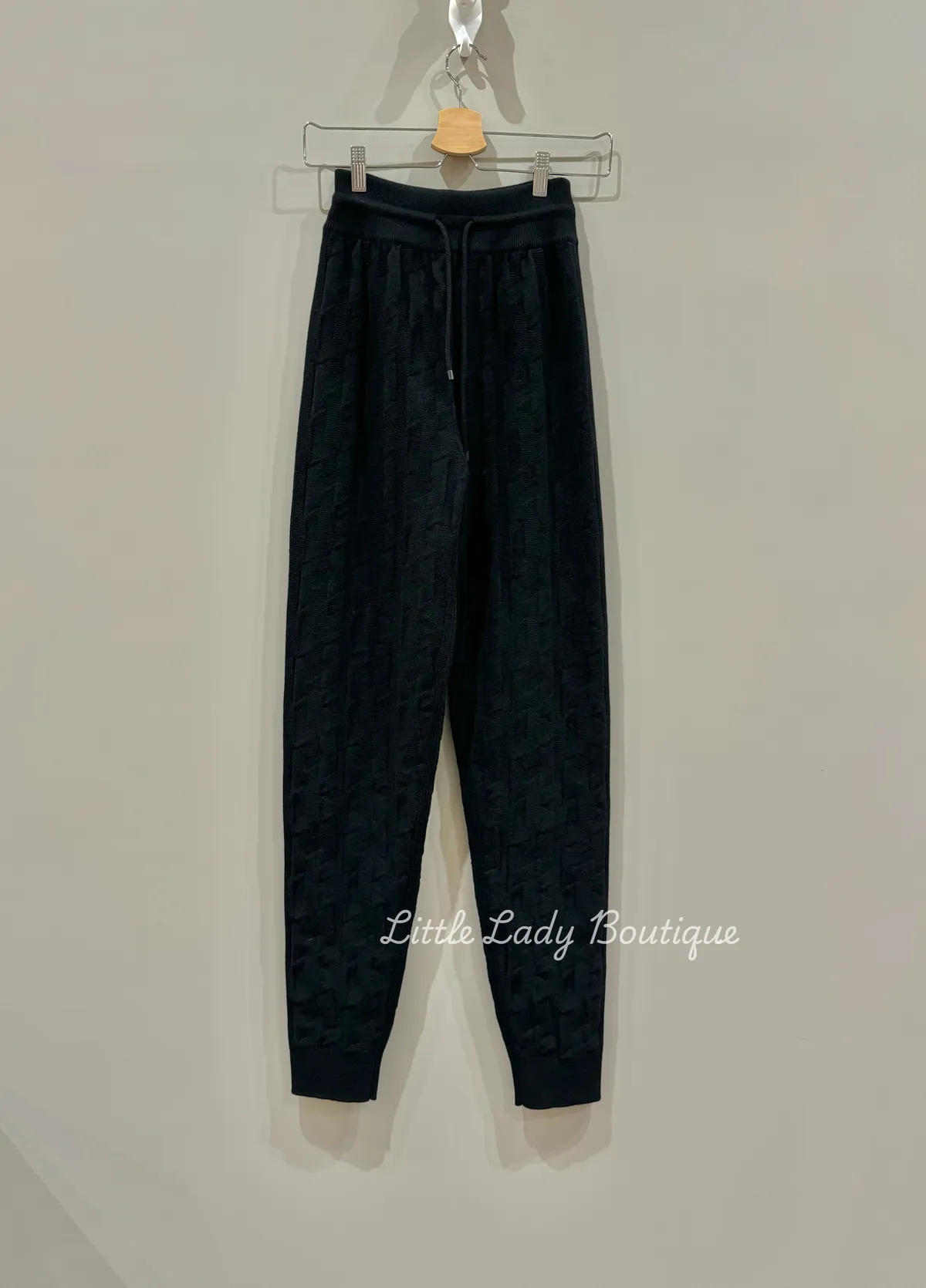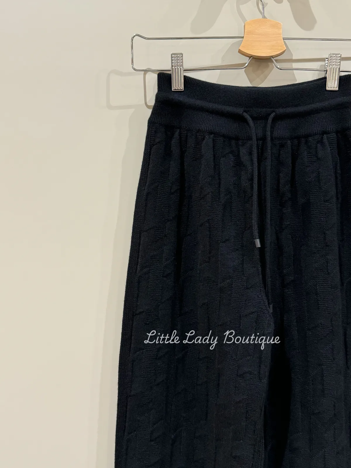 HERMES 女士 黑色 H針織 抽繩 褲腳縮口 慢跑風 長褲(100%初剪羊毛)