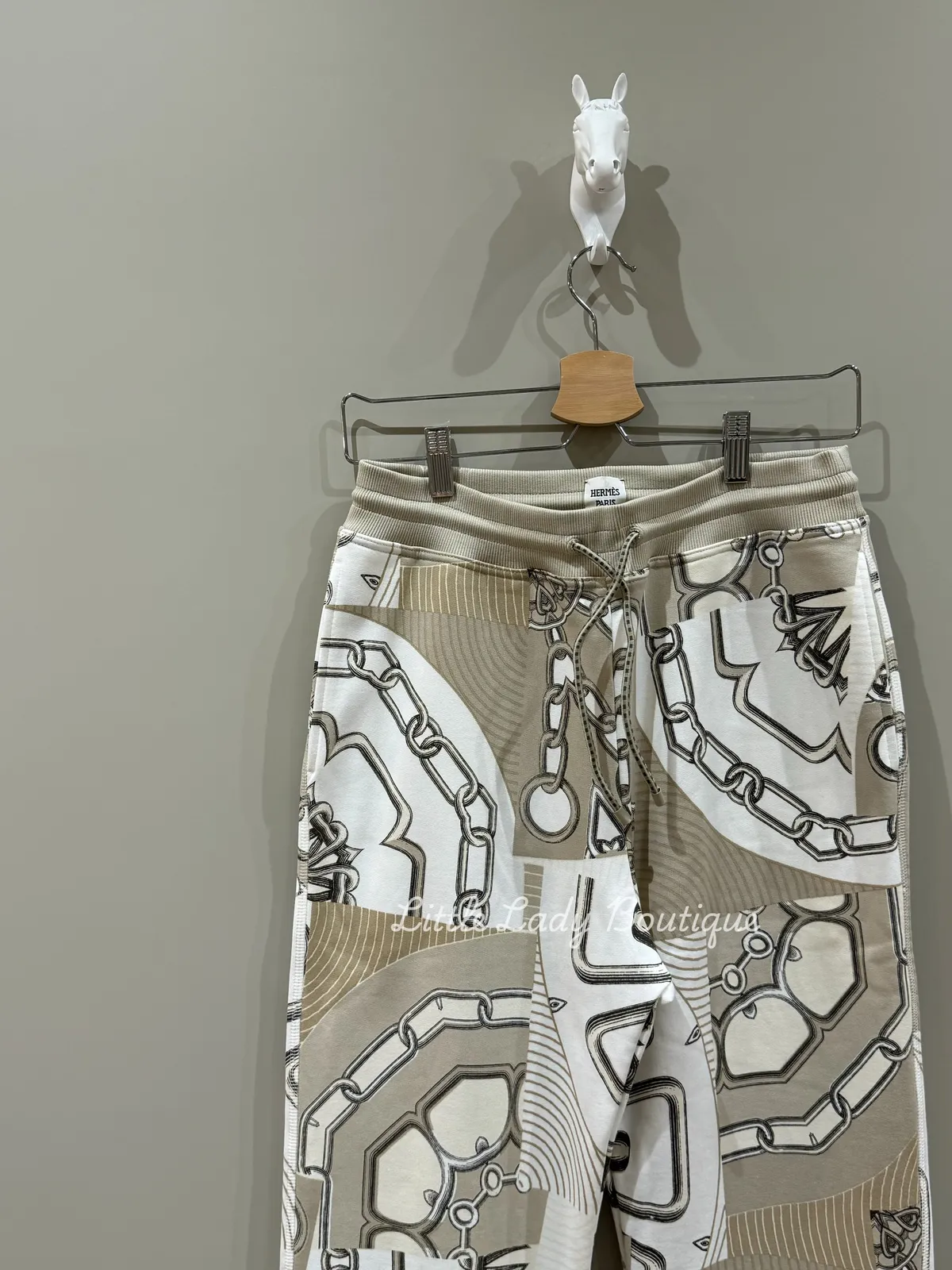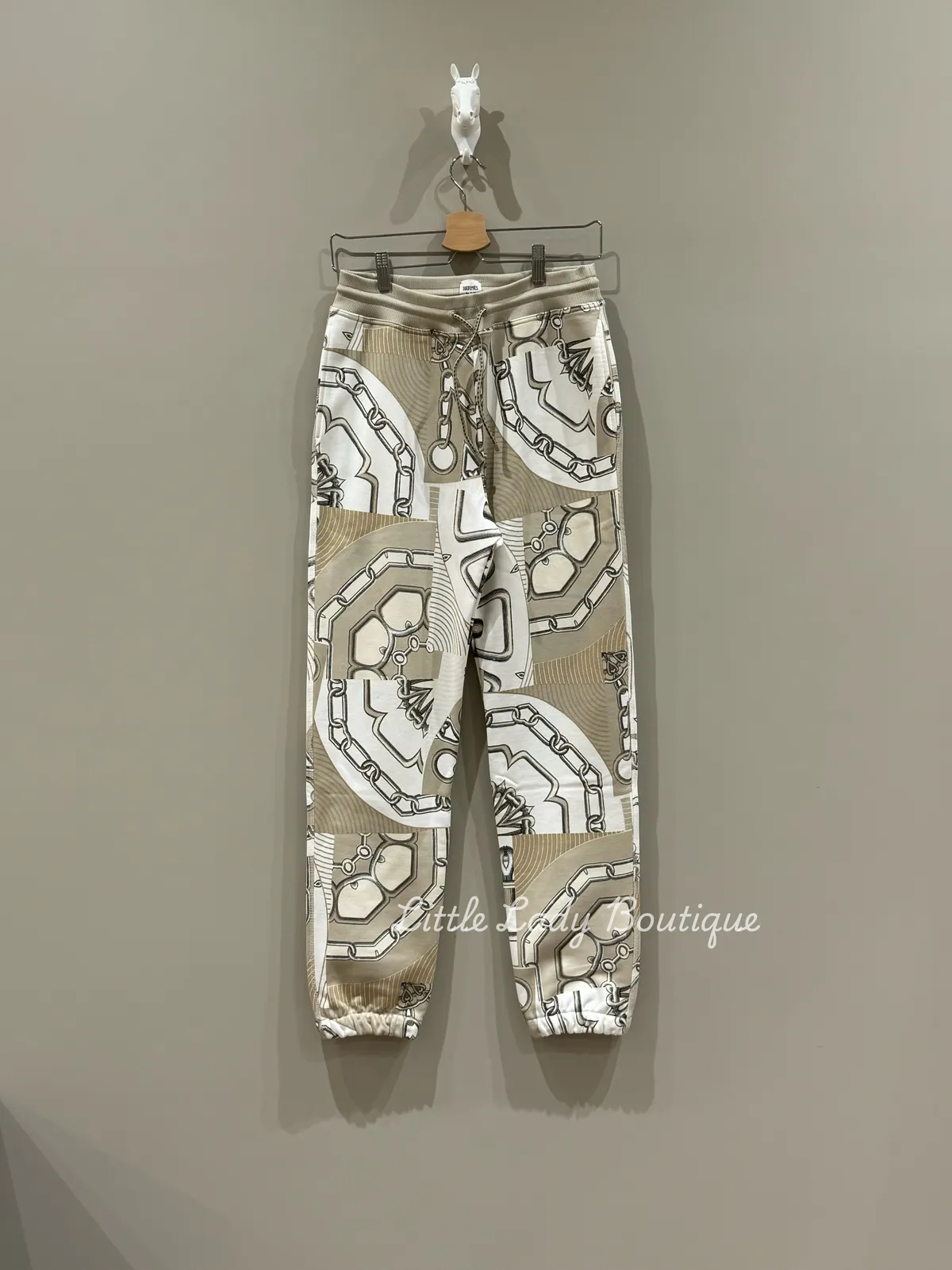 HERMES 女士 黏土米 馬具印花 抽繩 褲腳縮口 慢跑風 長褲 (100% 棉