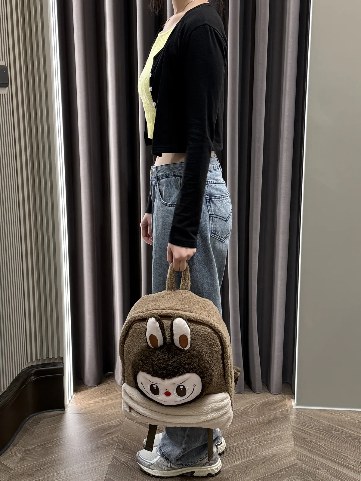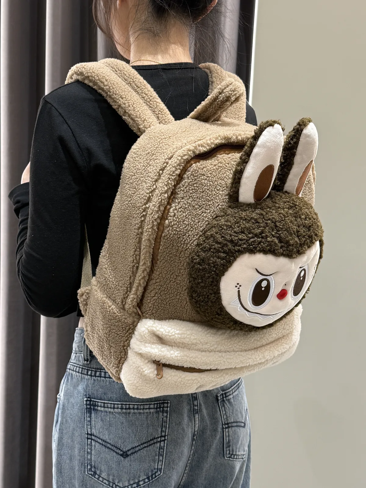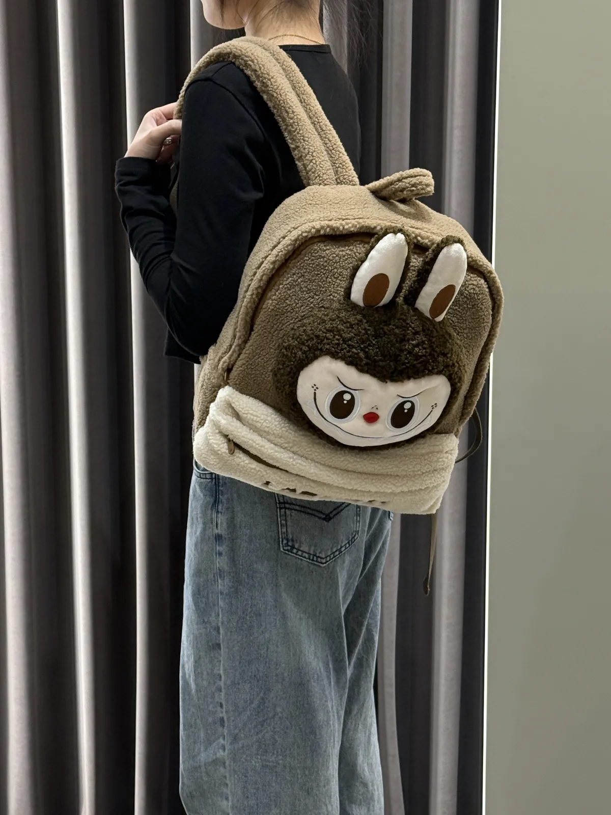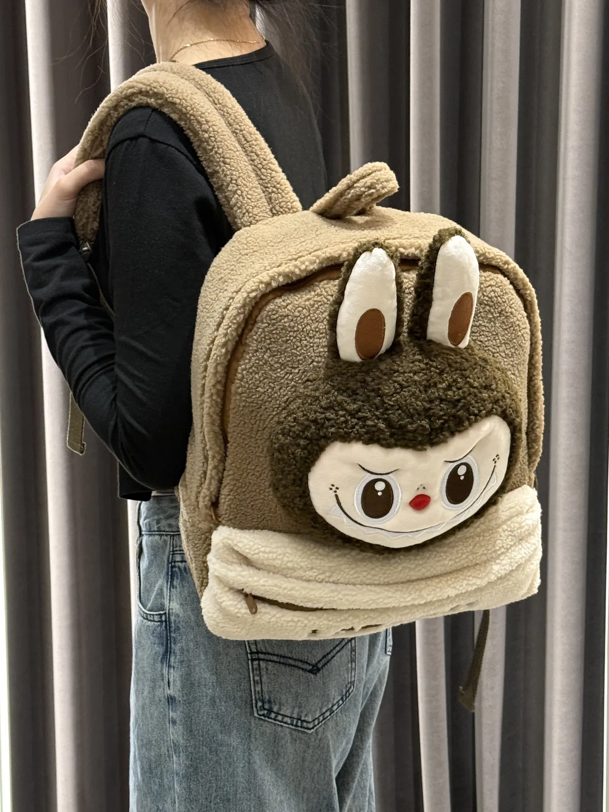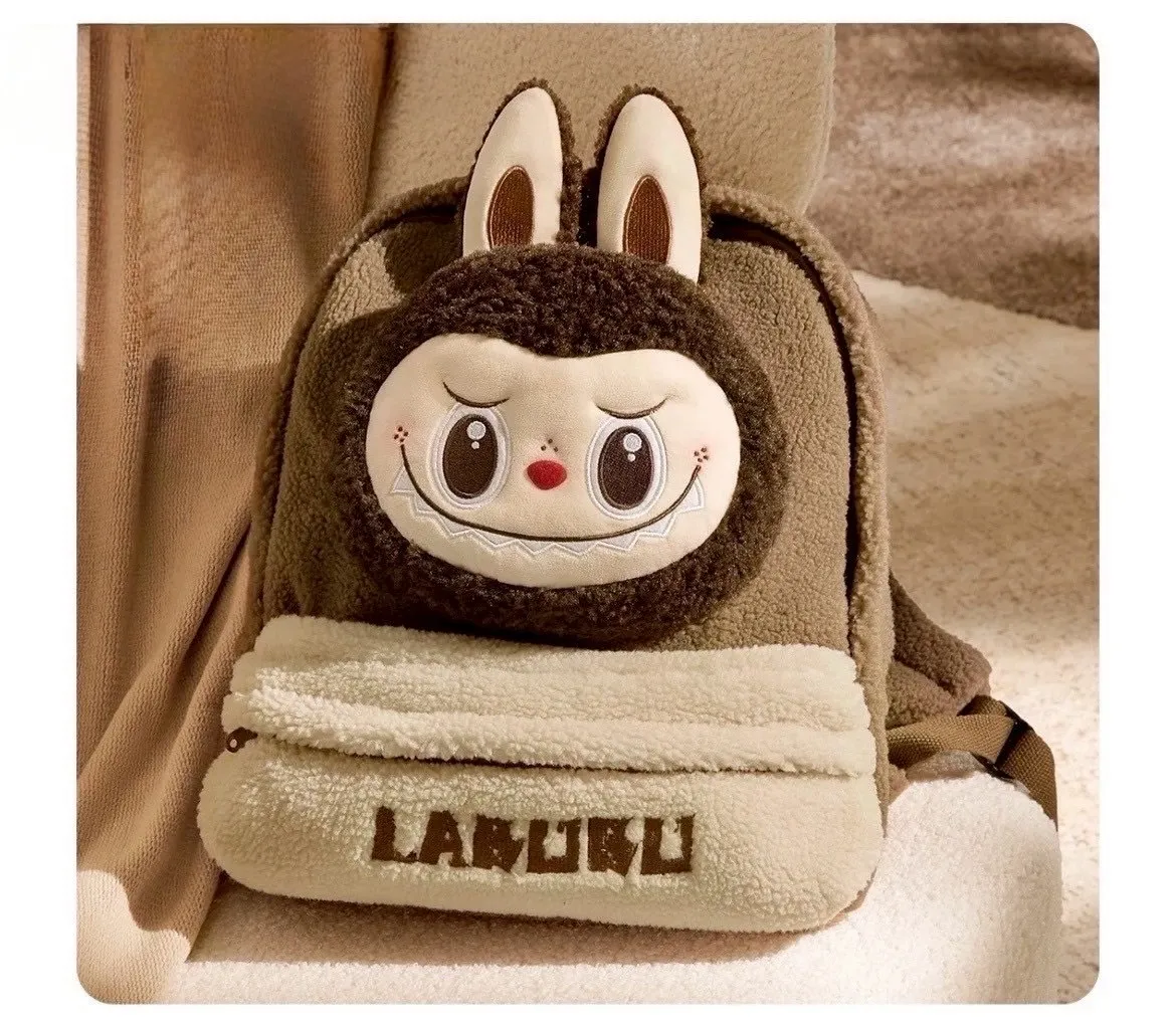 POPMART LABUBU 拉布布 棕色 羊羔絨雙肩後背包 (100%聚酯纖維)(30*