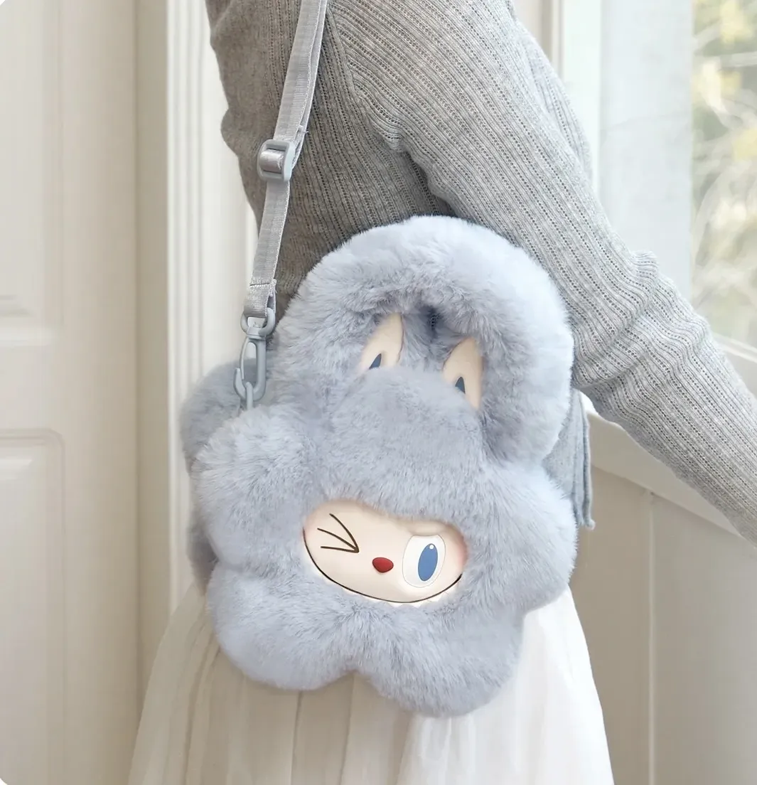 POPMART LABUBU 拉布布 毛絨花花包 - 藍 (21*30*12.5CM)