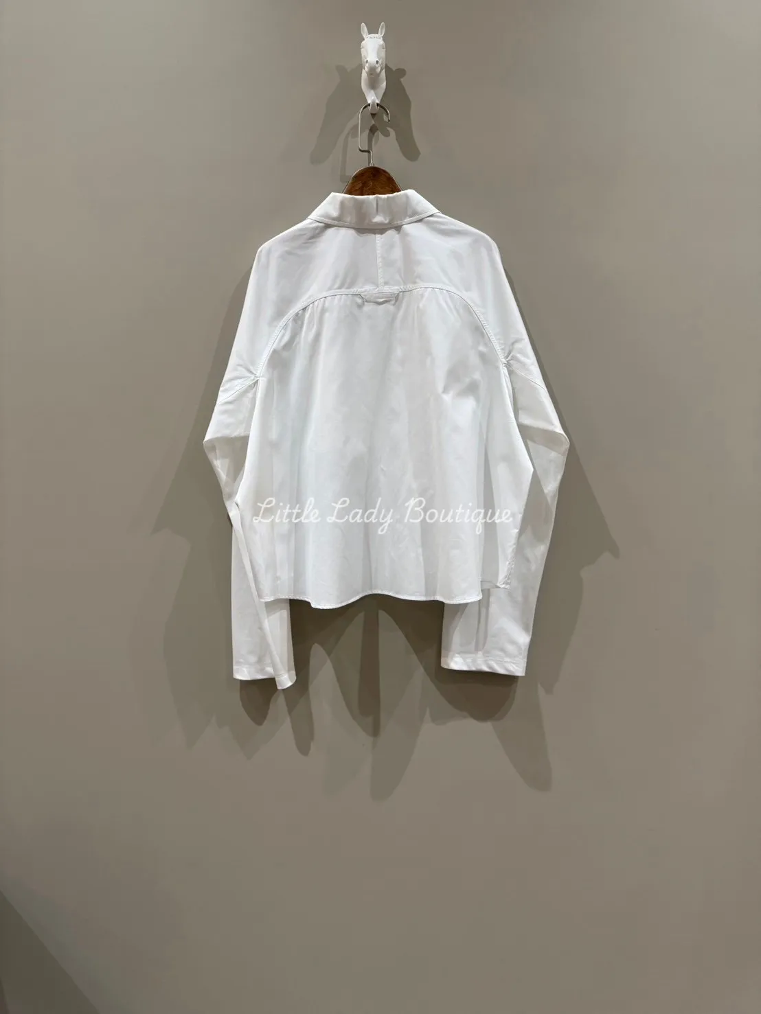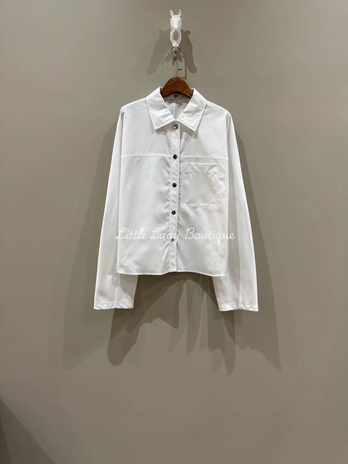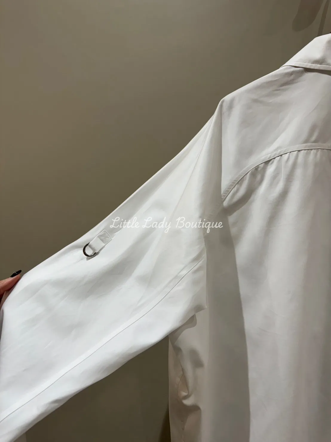 HERMES 女士 白色 工裝風 可捲袖釦造型 銀釦子 長袖襯衫(100%棉)
