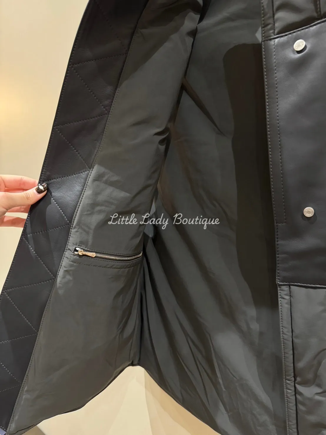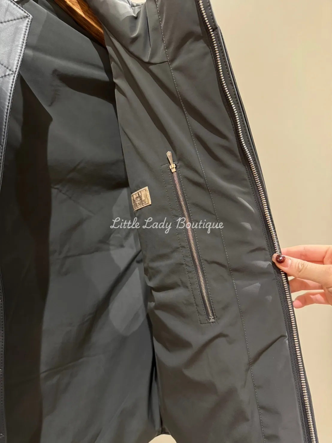 HERMES 男士 鐵灰色 拚皮革 內外各2口袋 立領 羽絨背心(80%尼龍20%彈性纖維
