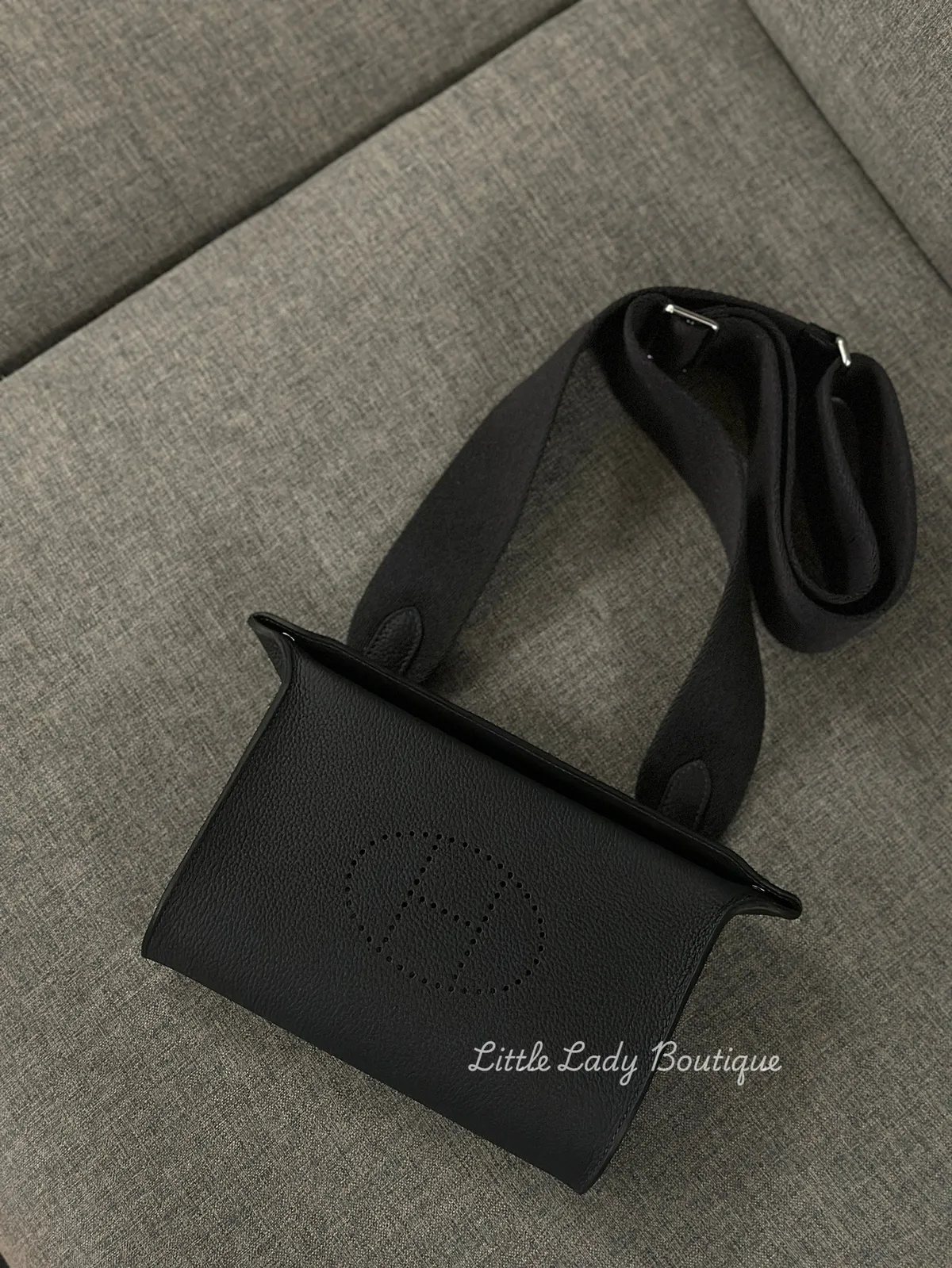 HERMES VIDEPOCHES H洞洞 布面背帶 銀釦 3Y 黑藍色 CABAN 斜