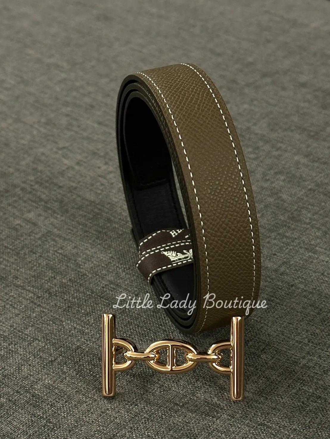 24MM HERMES 皮帶釦頭 亮面 玫瑰金 豬鼻造型H