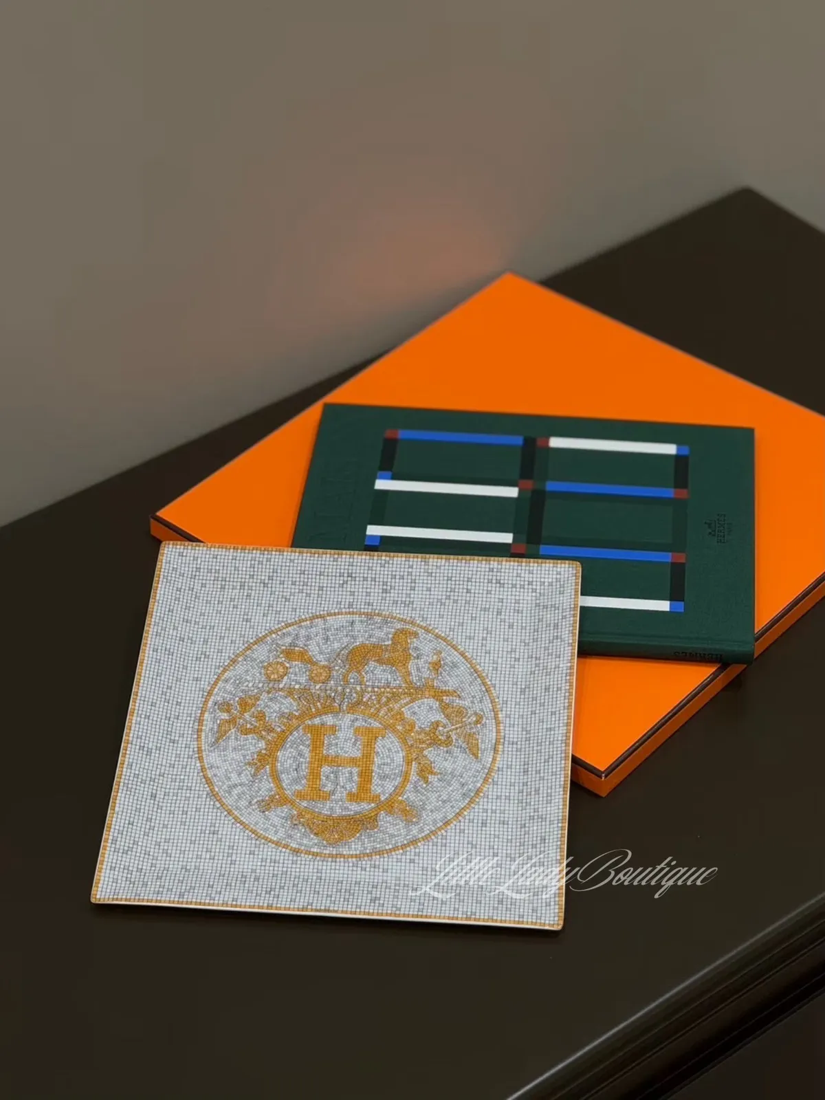 HERMES 馬賽克24 金色 5號 中間馬車H圖案 正方形餐盤(長23*寬23cm)