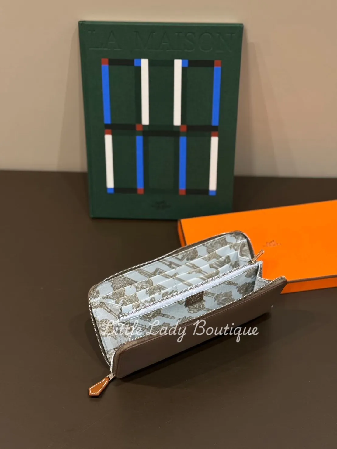 HERMES SILK IN LONG 絲巾長夾 銀釦 18 大象灰 / 內 水藍 (E