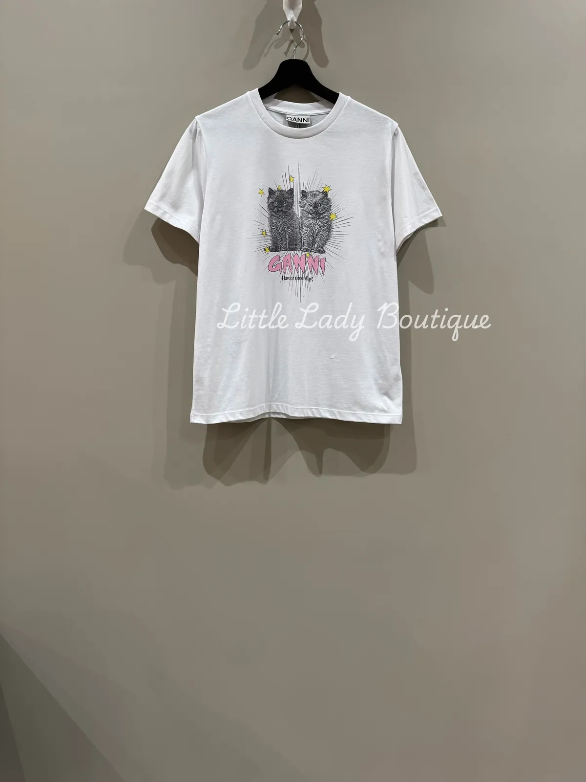 GANNI 女士 白底 兩隻貓咪 短袖上衣