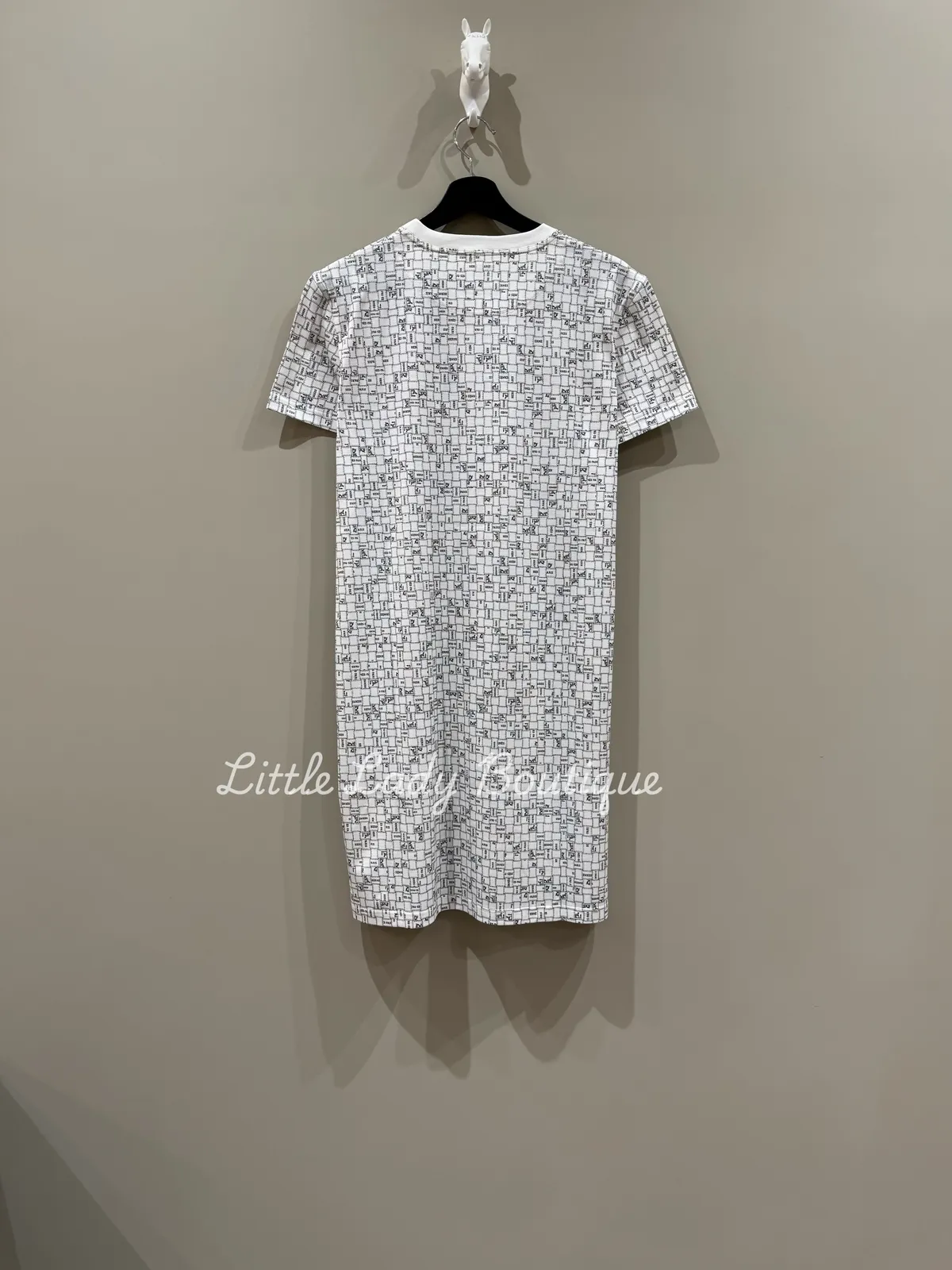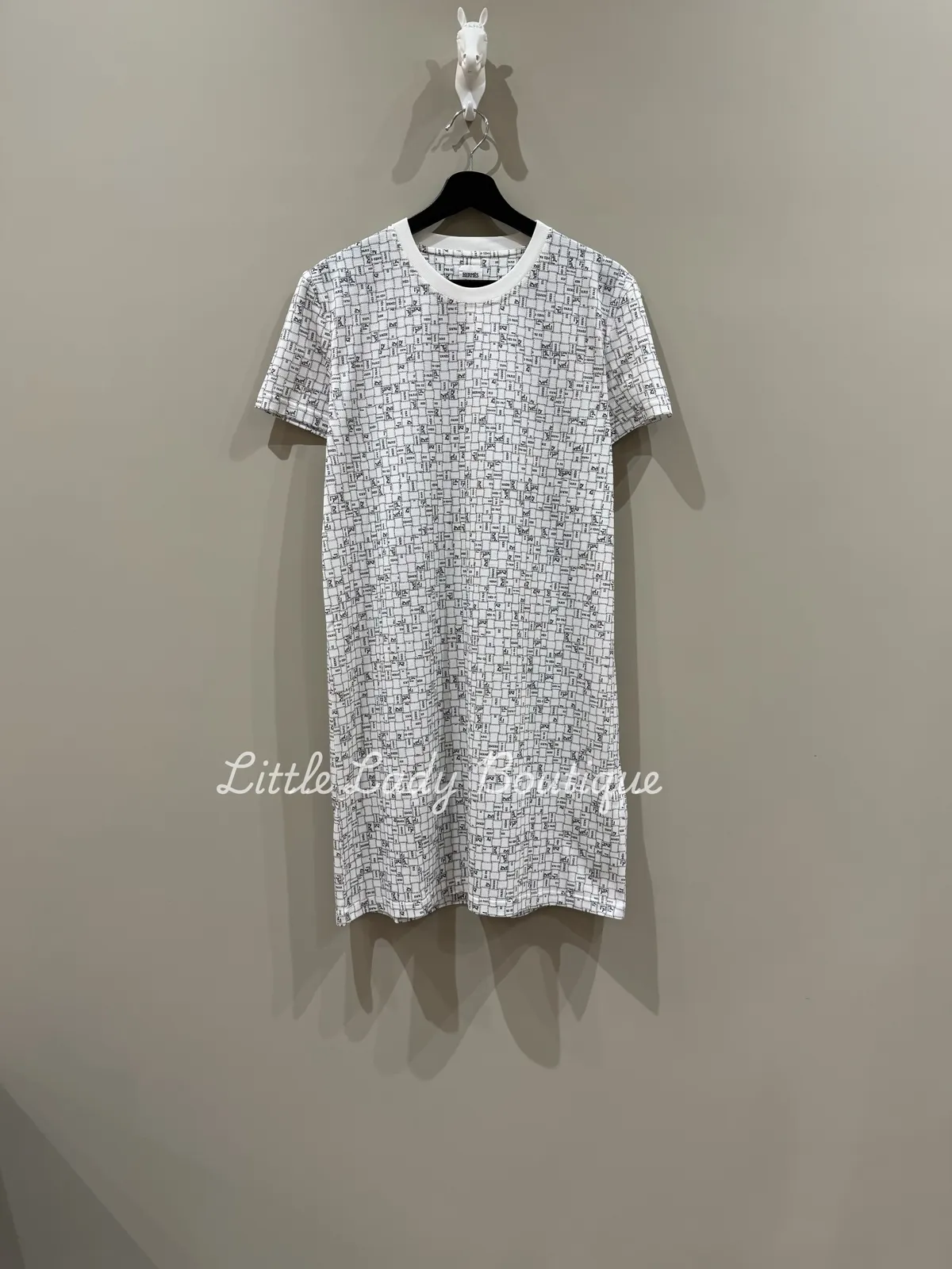 HERMES 女士 白底 滿版緞帶交織 圖案 短袖洋裝(100%棉)