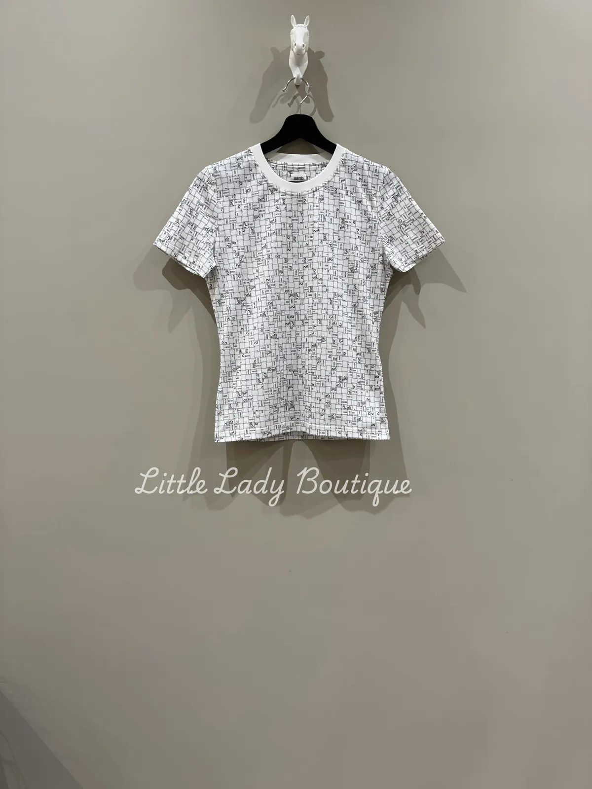 HERMES 女士 白底 滿版緞帶交織 圖案 短袖上衣(100%棉)