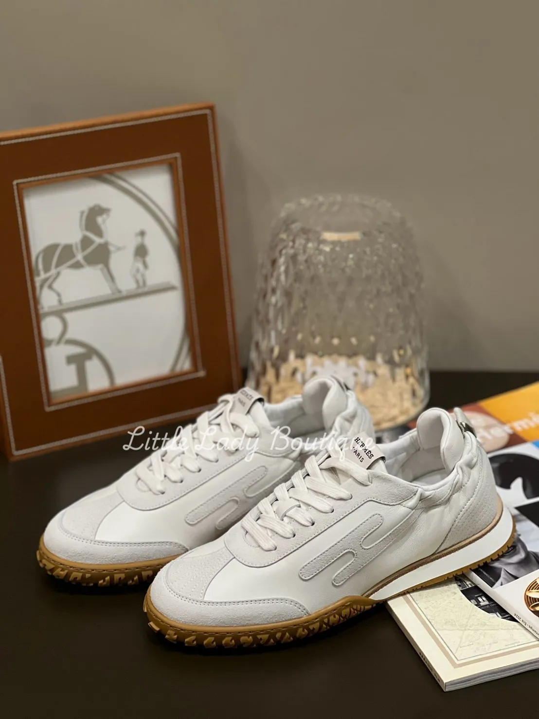HERMES 男士 JET 白色NAPPA皮 拼 山羊絨面 側邊H 休閒德訓鞋