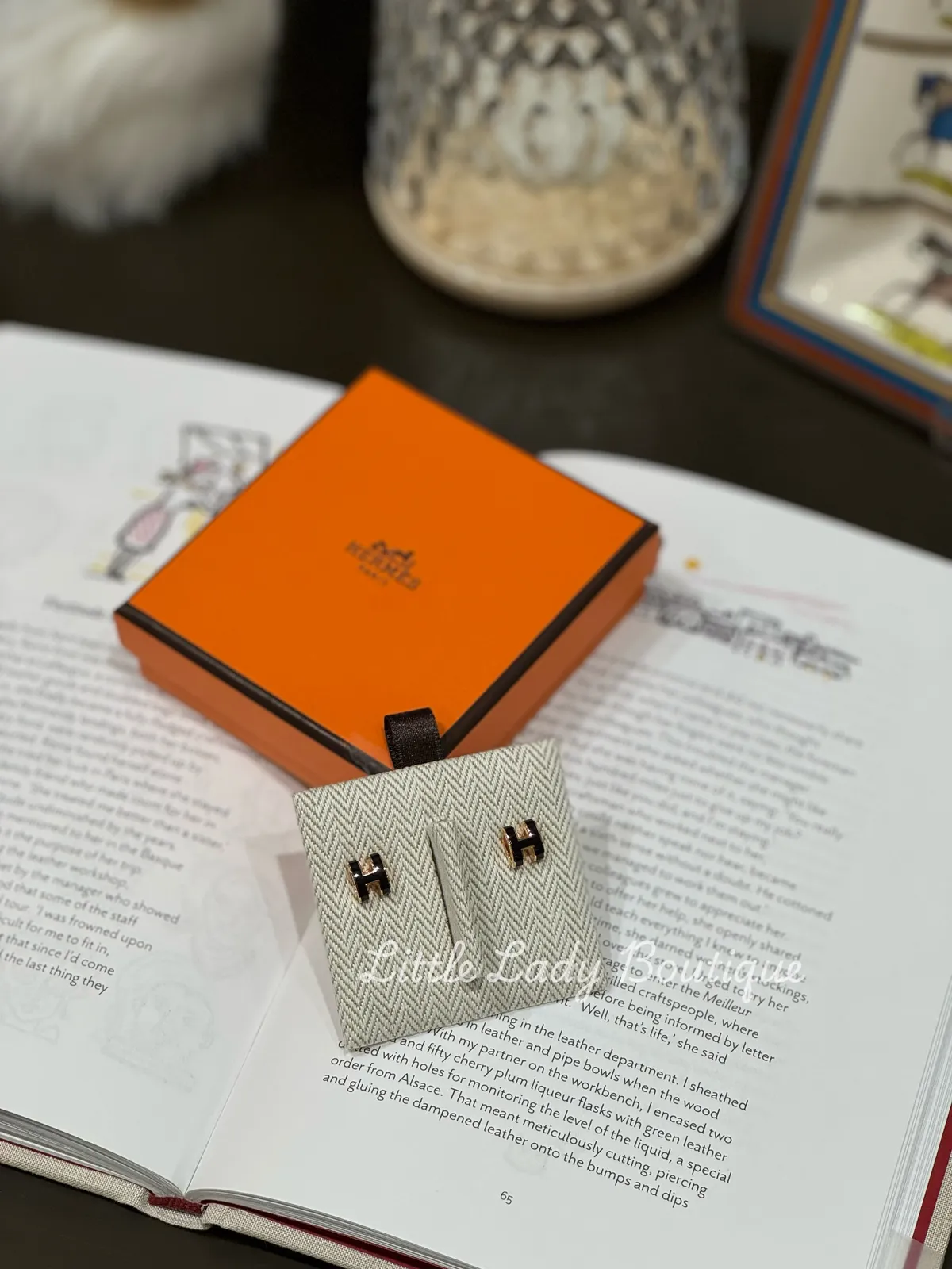 HERMES MINI POP H 耳環 玫瑰金色 / 黑色