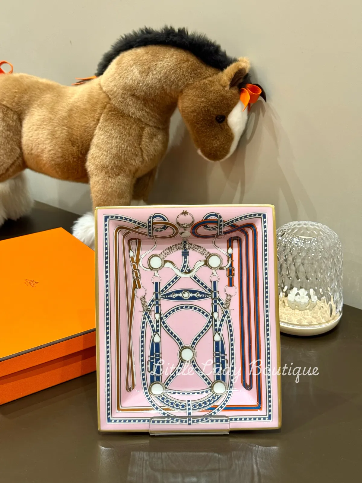 HERMES Grand Tralala 匈牙利皇家領衛隊坐騎華麗鞍轡 陶瓷 置物盤(玫瑰