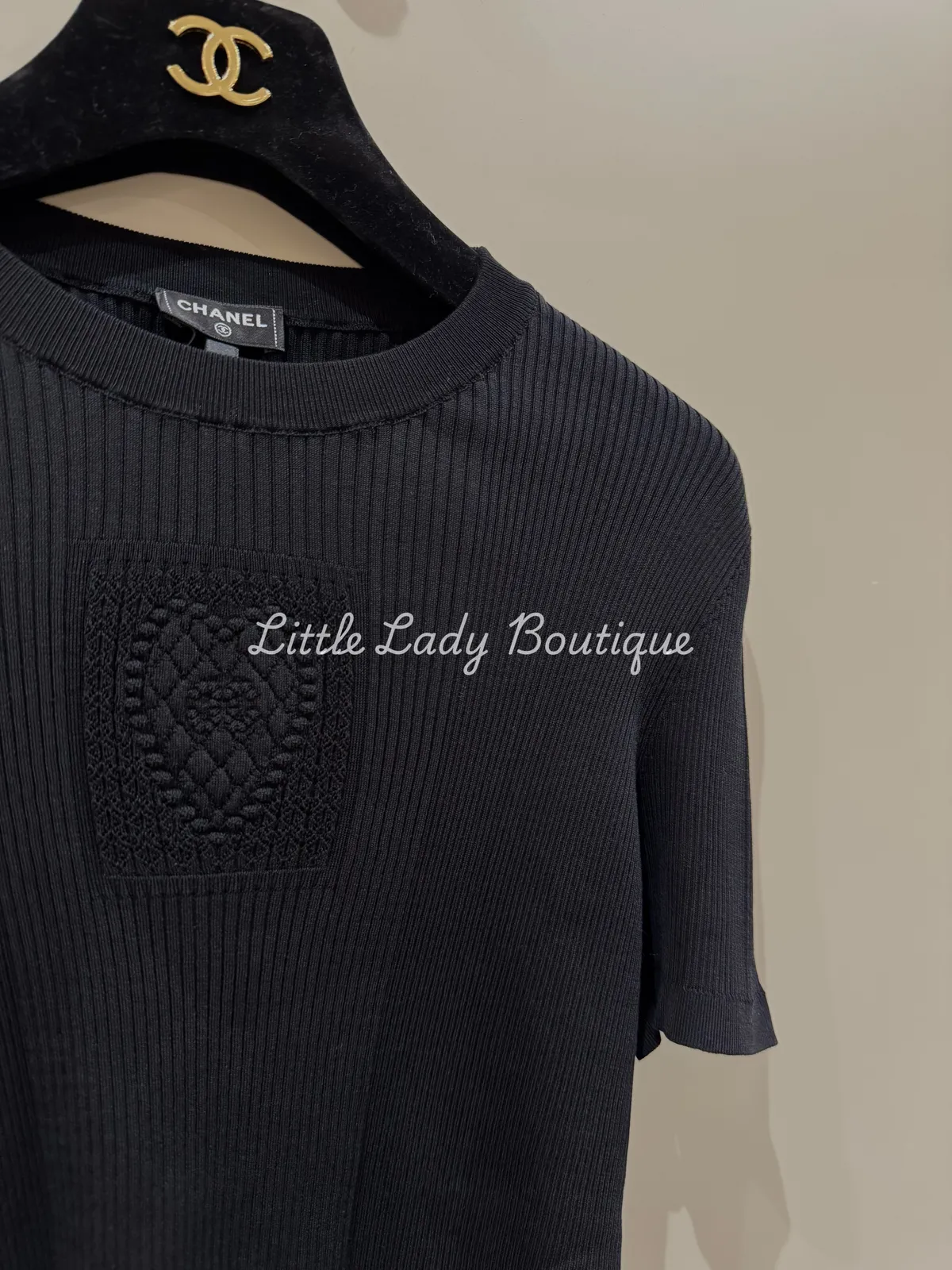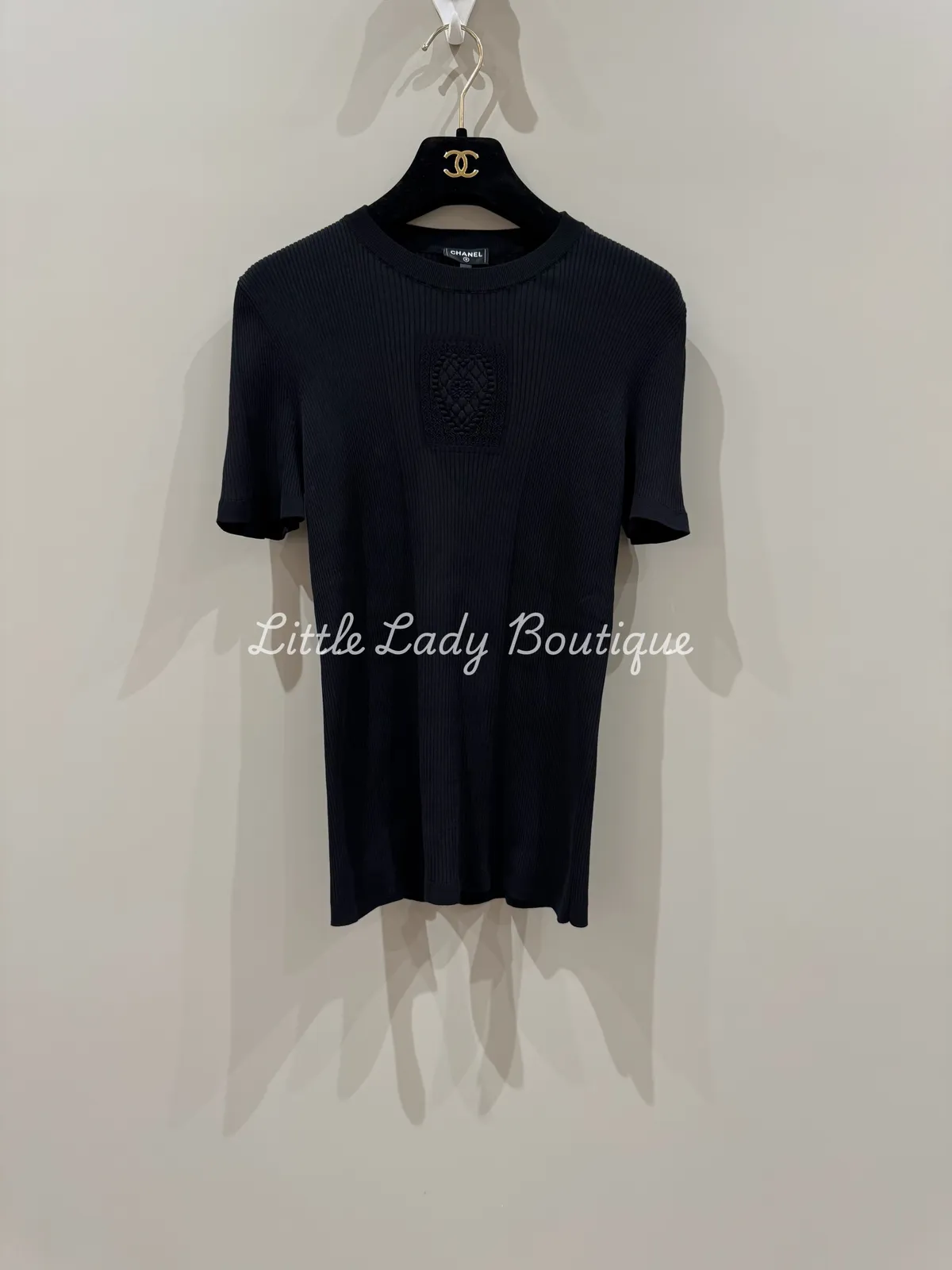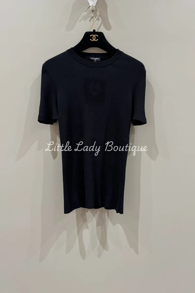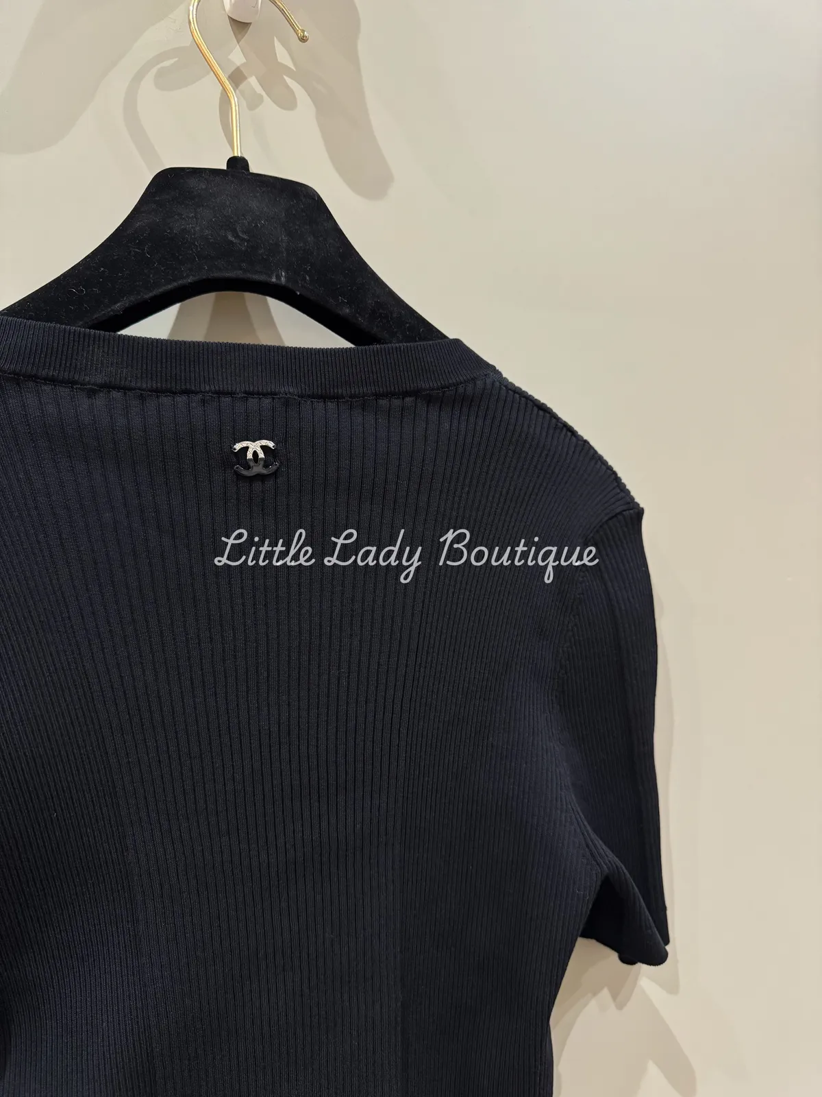 CHANEL 女士 黑底 中間愛心LOGO 背後CC小標 短袖上衣