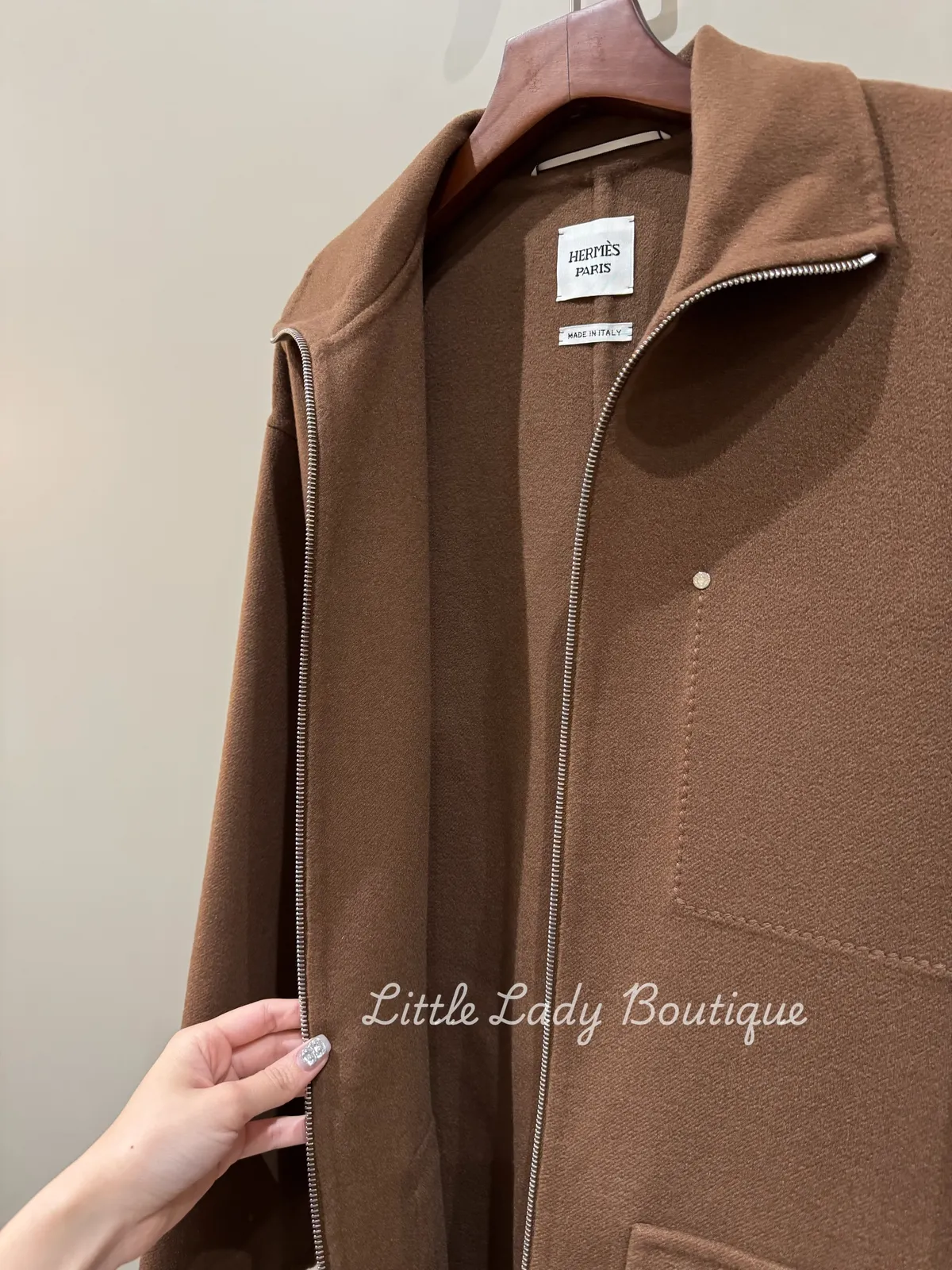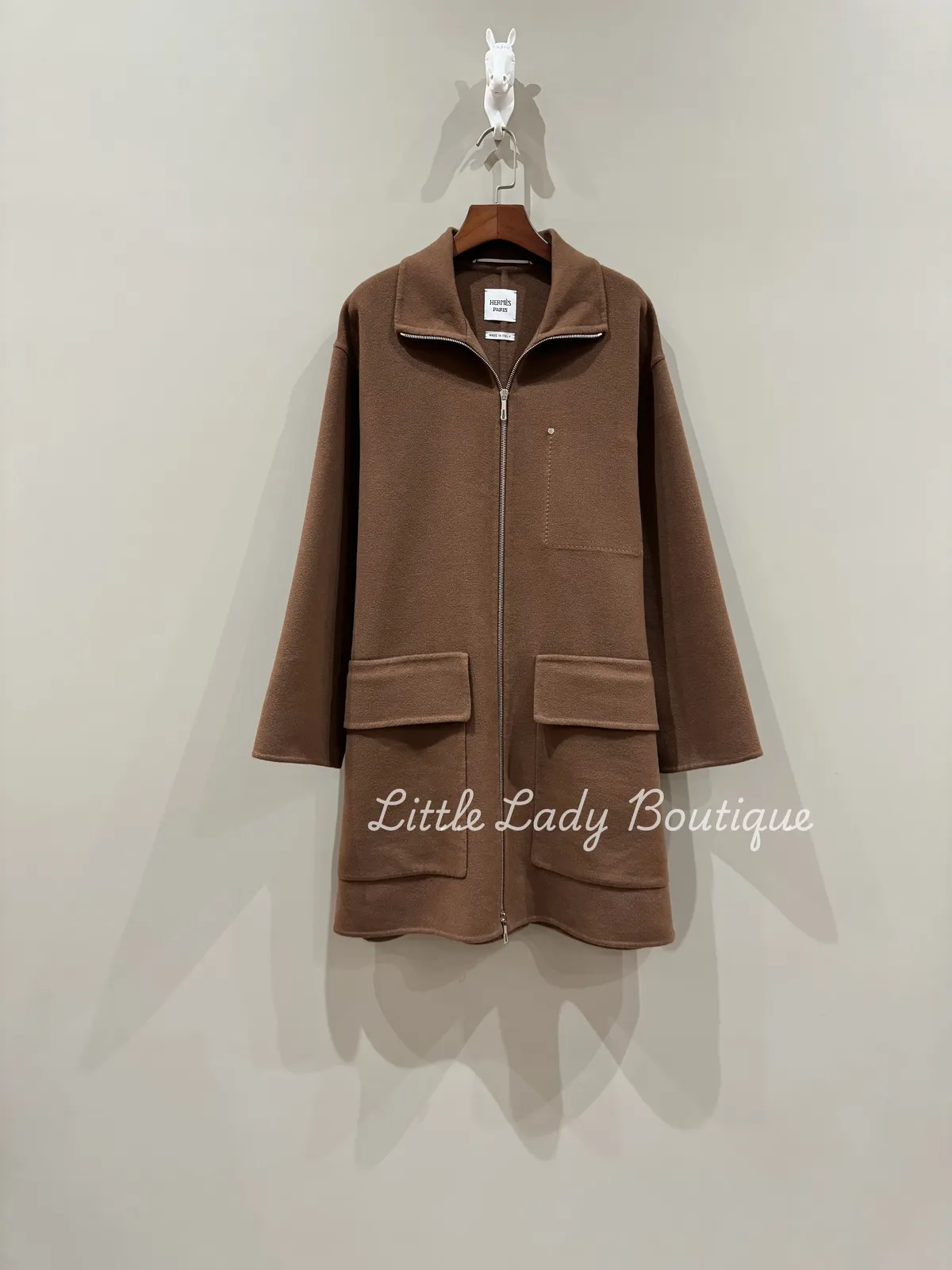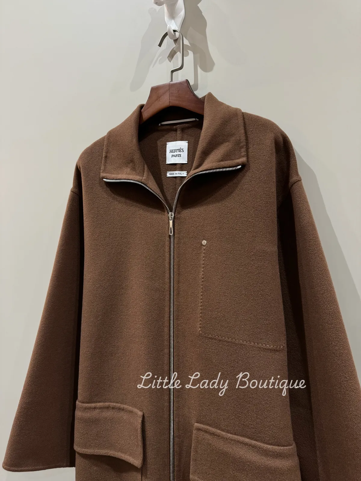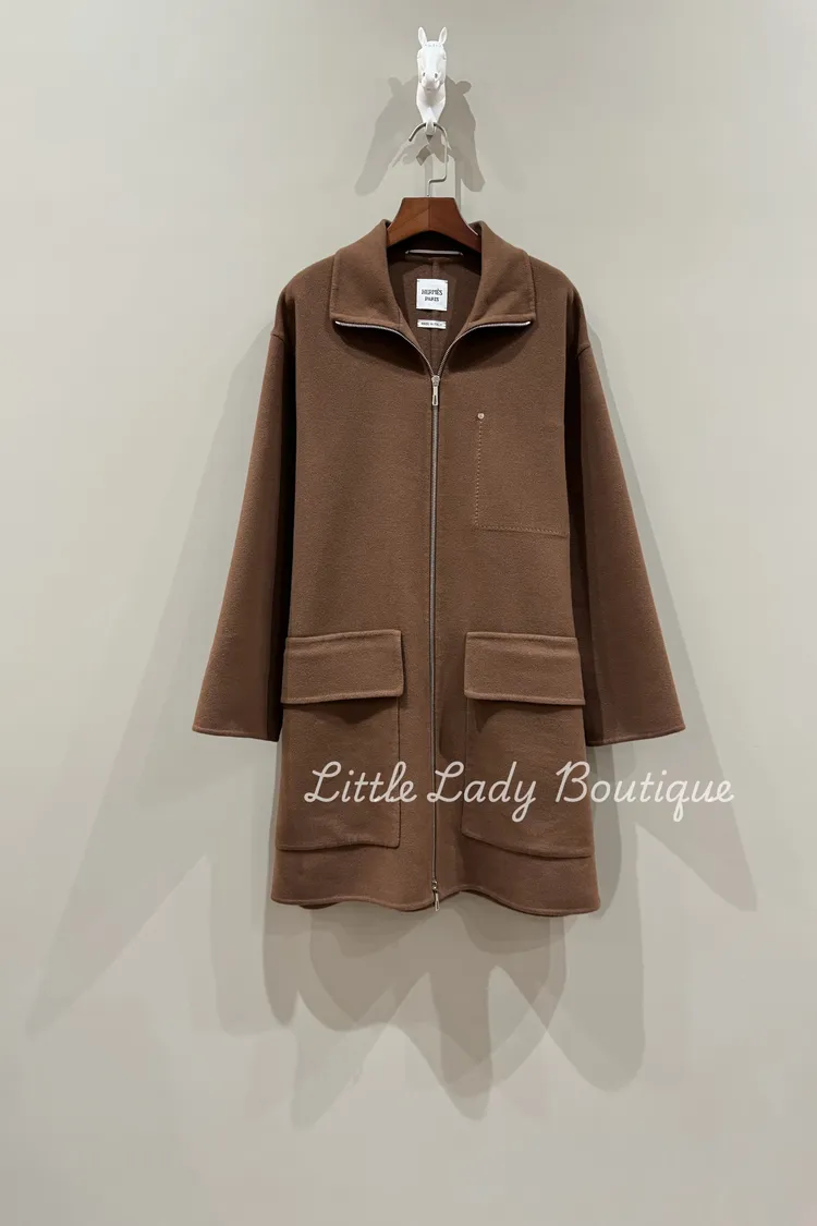 HERMES 女士 橡樹棕色 DOUBLE FACE 上下開拉鍊 雙大口袋 可立領 大衣外