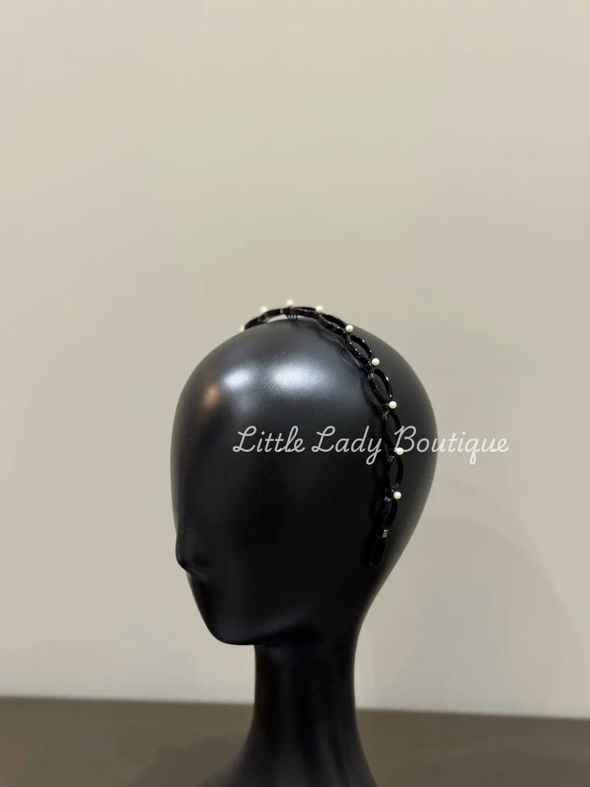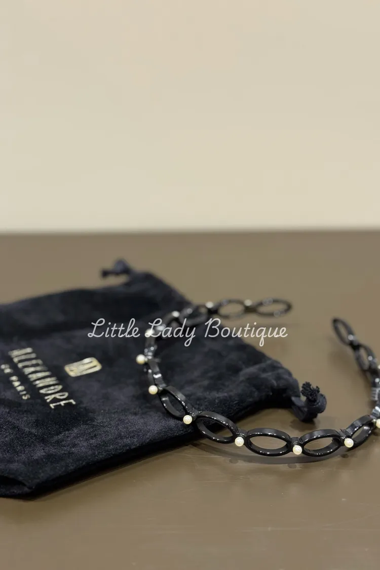 亞力山卓 黑底 圓圈空洞 上很多小珍珠 髮箍
