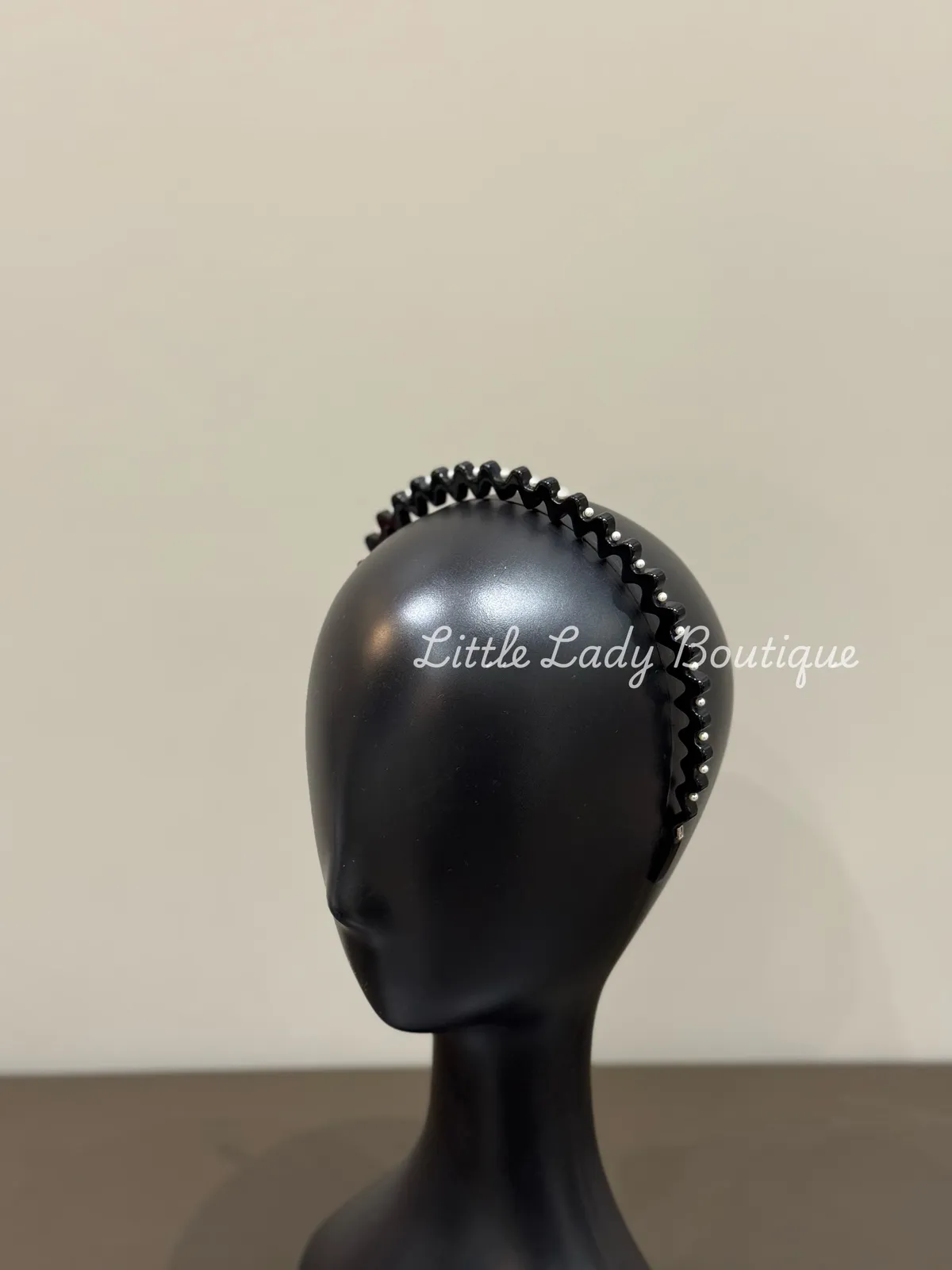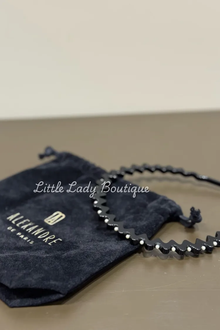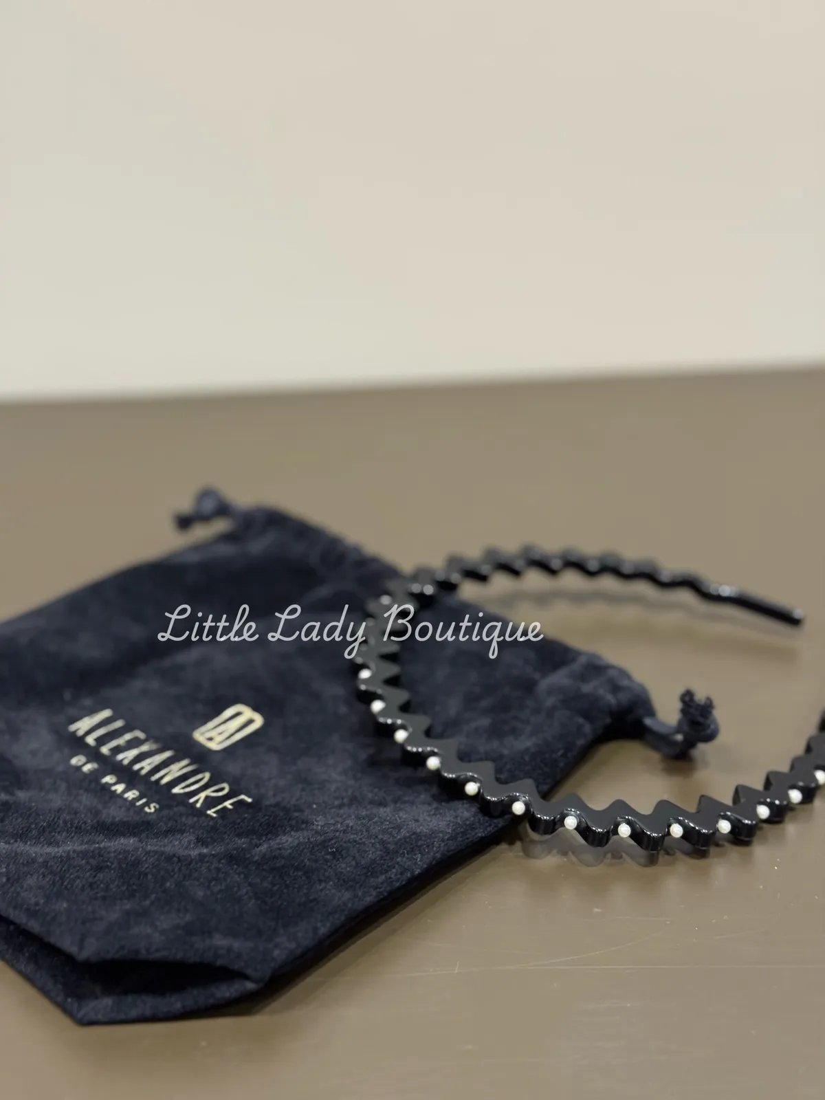 亞力山卓 黑底 波浪造型 卡很多小珍珠 髮箍