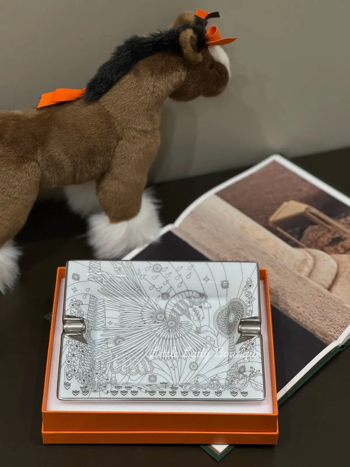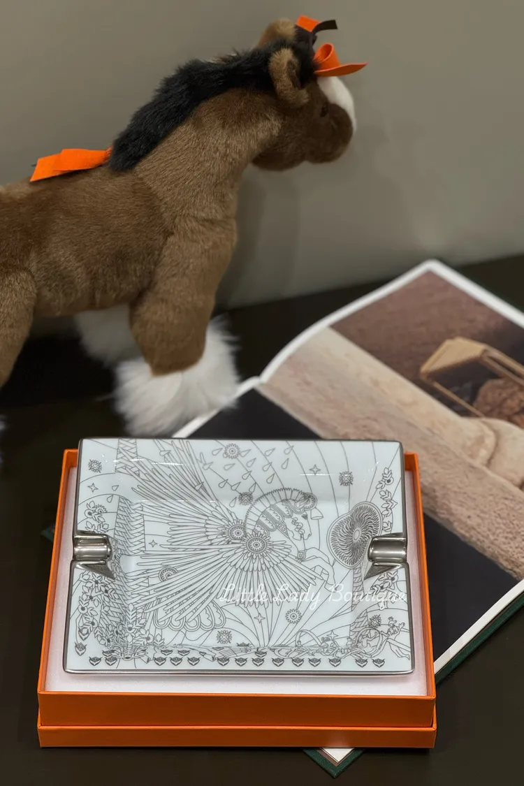HERMES La Source de Pegase 白底 銀色希臘神飛馬 圖案 瓷器 菸