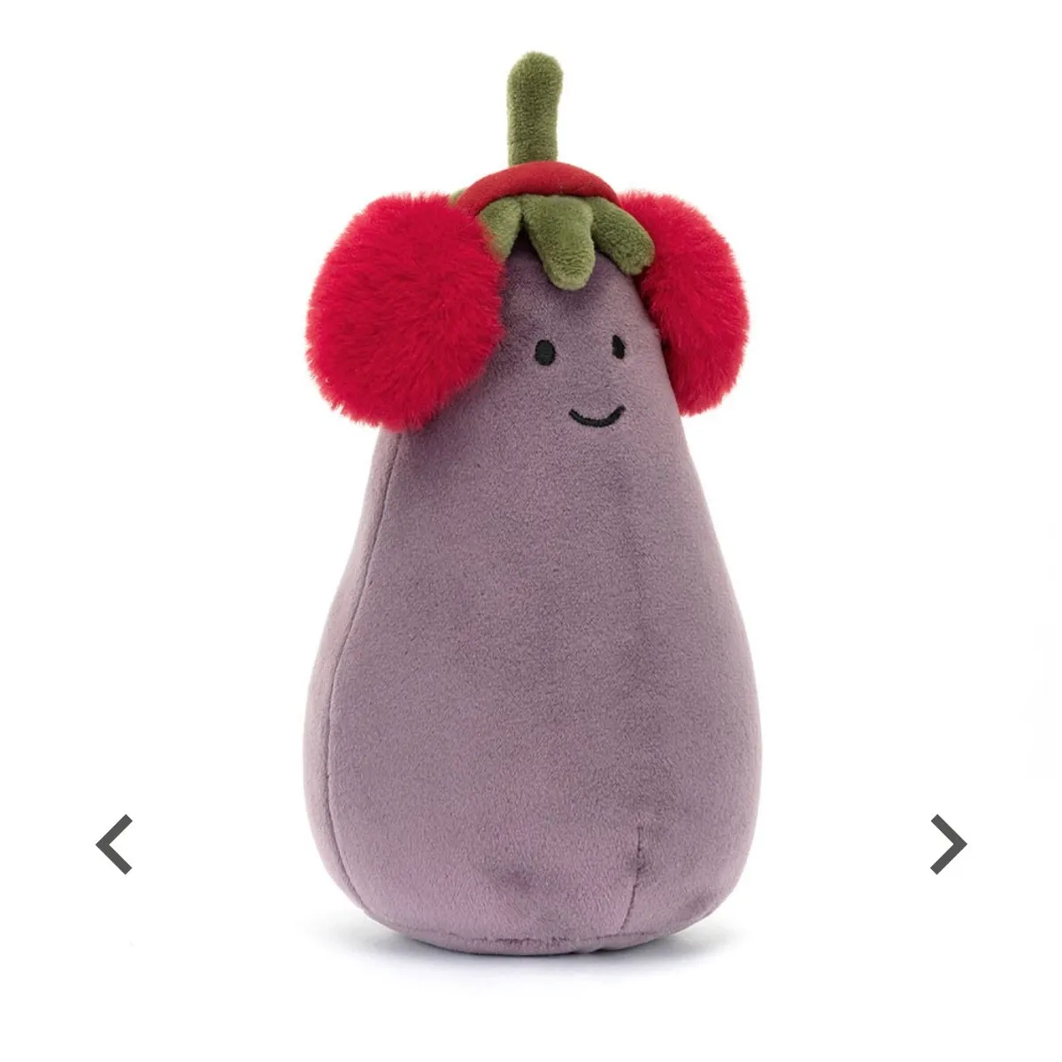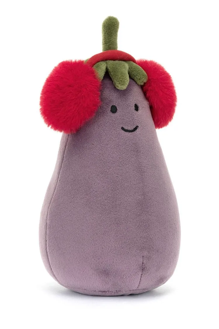 JELLYCAT 戴紅色耳罩的 茄子 玩偶( 16cm x 9cm x 8cm)