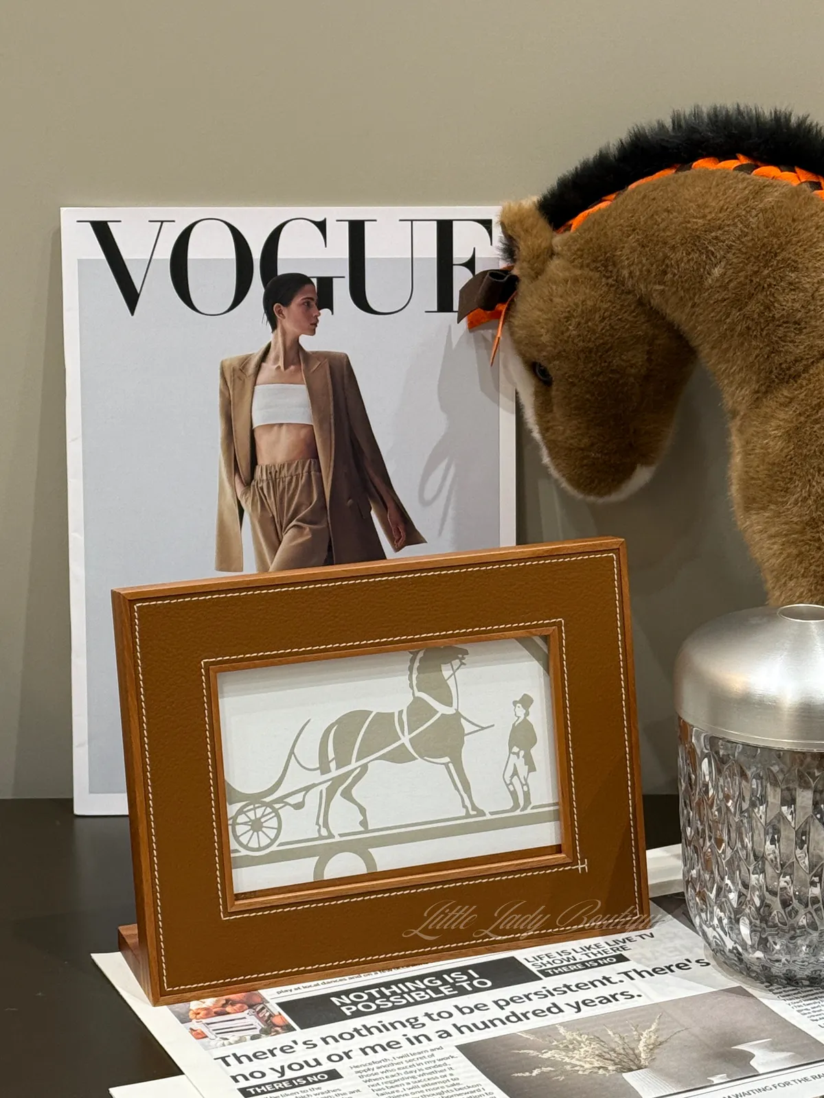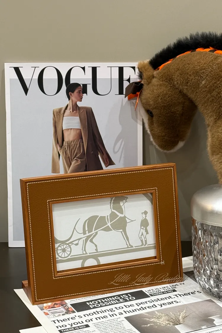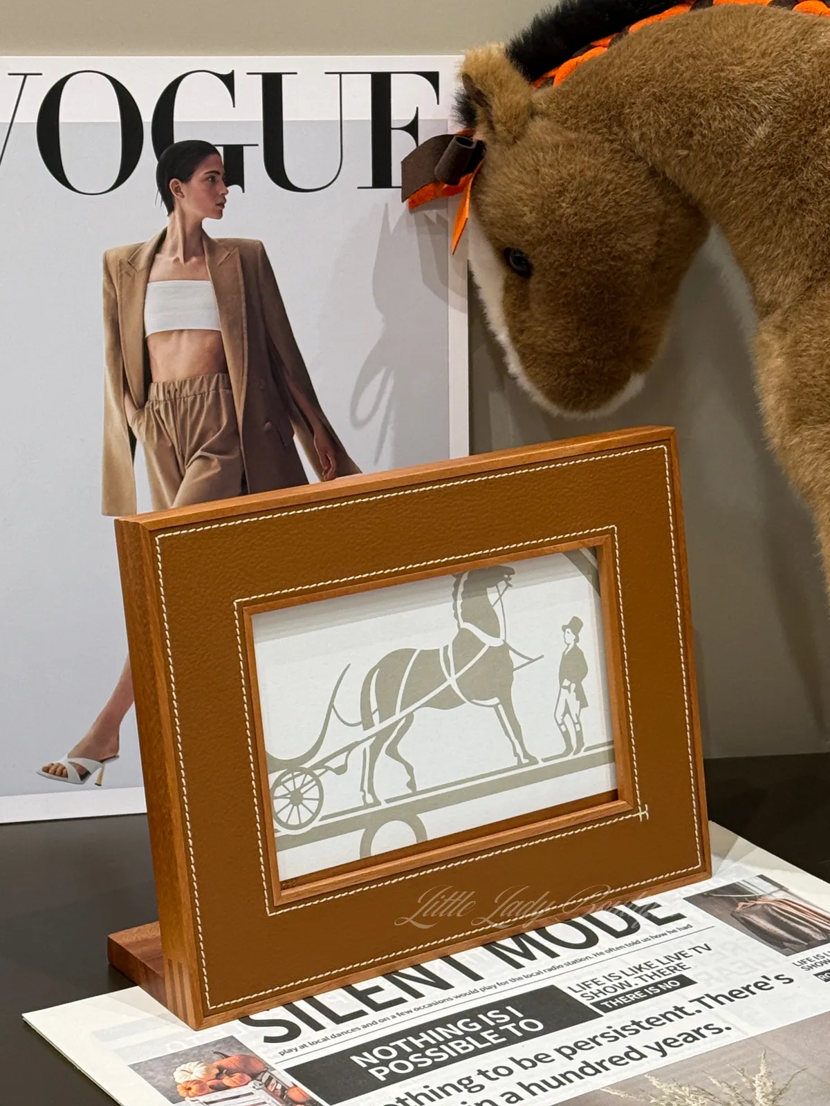 HERMES Pleiade 淺黃褐色 橫式相框 桃花心木/馬鞍針縫H公牛皮(長21x寬1