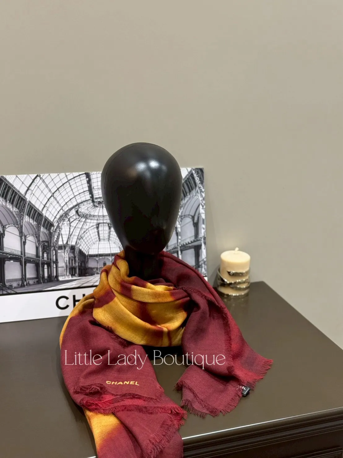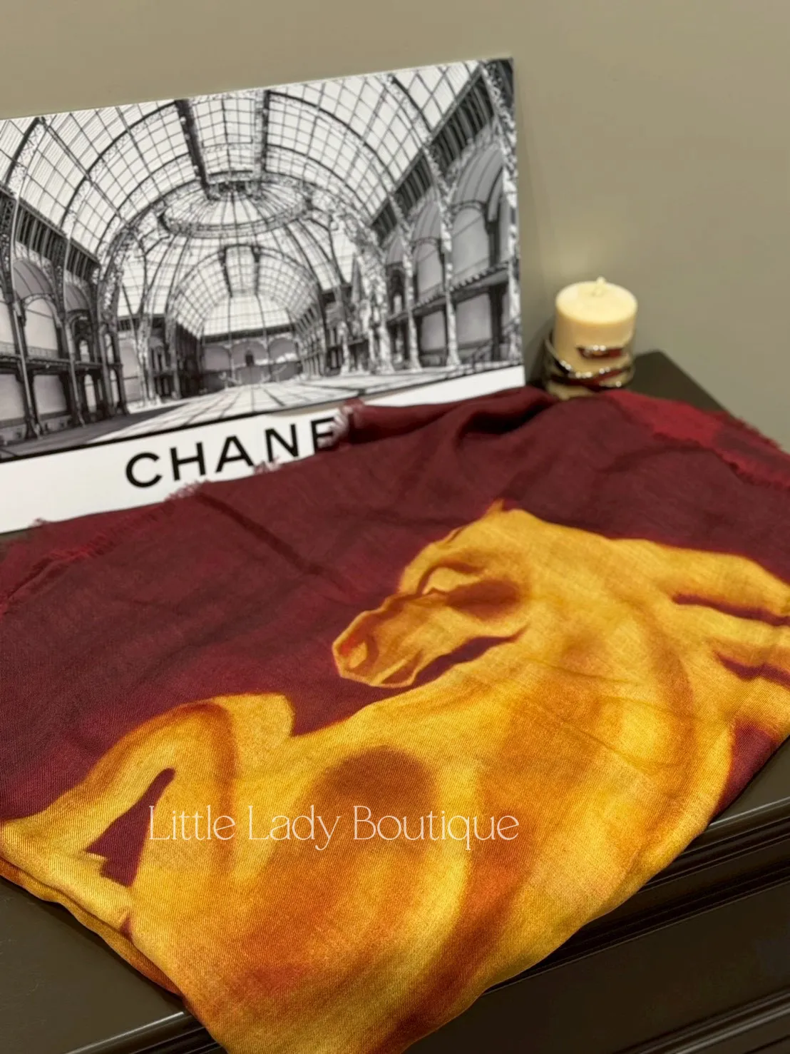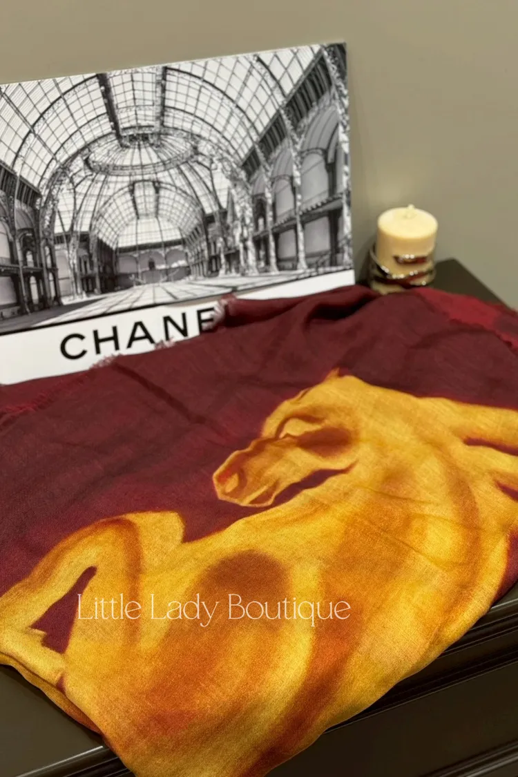 CHANEL 熱烈紅 黃駿馬 流蘇圍巾