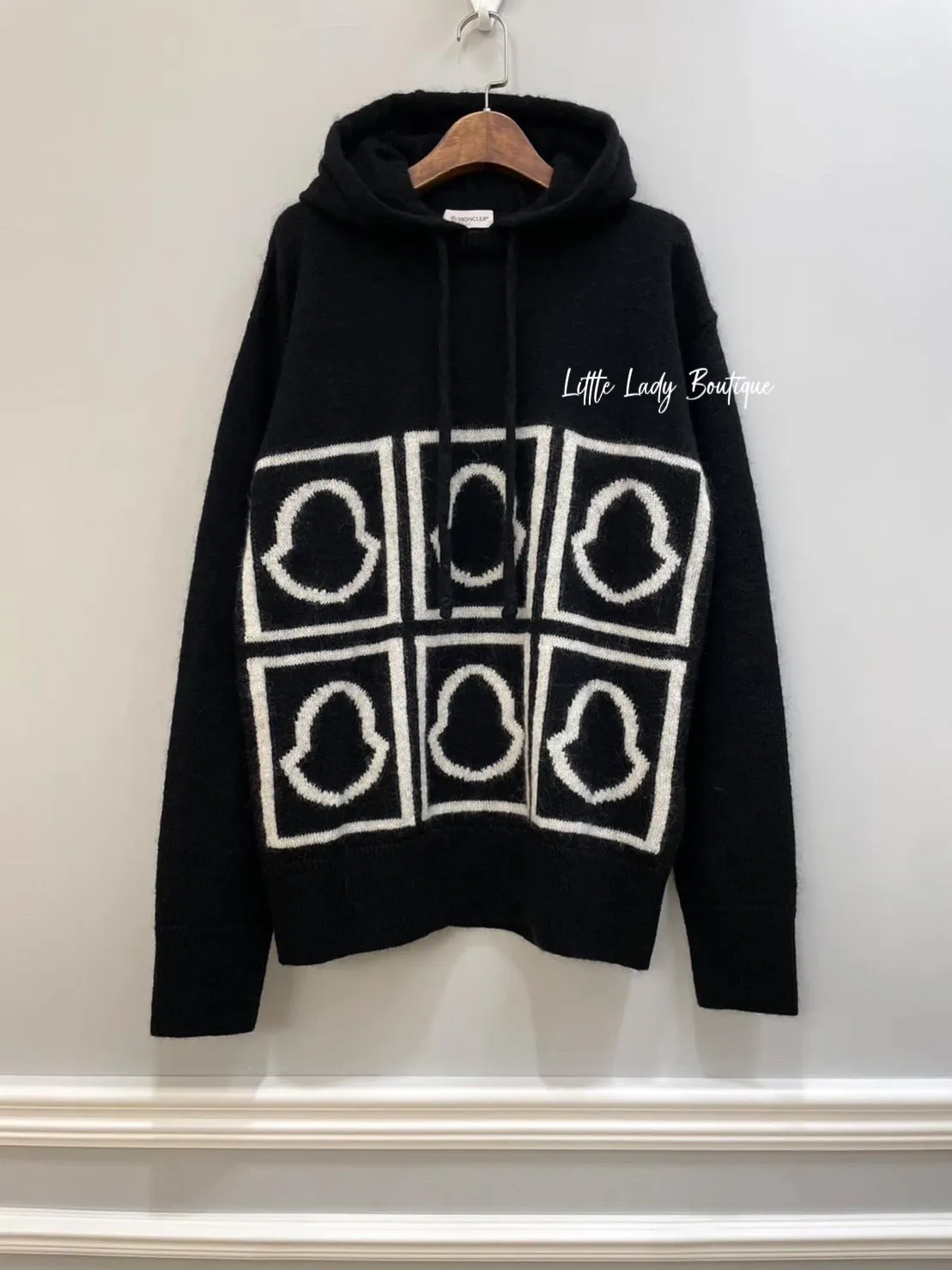 MONCLER 黑底 白線LOGO 連帽 長袖 毛線衣
